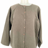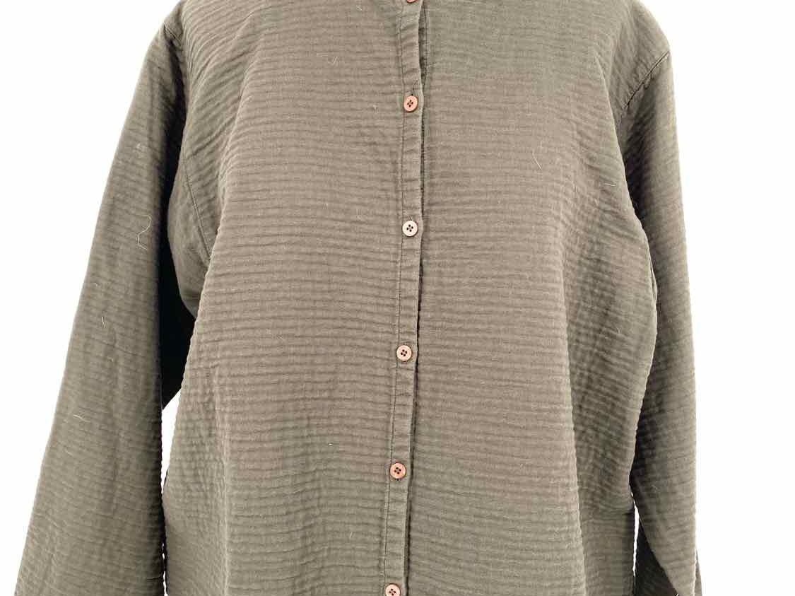 Eileen Fisher Women's Green Size S Button Down Cotton Textured Long Sleeve