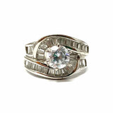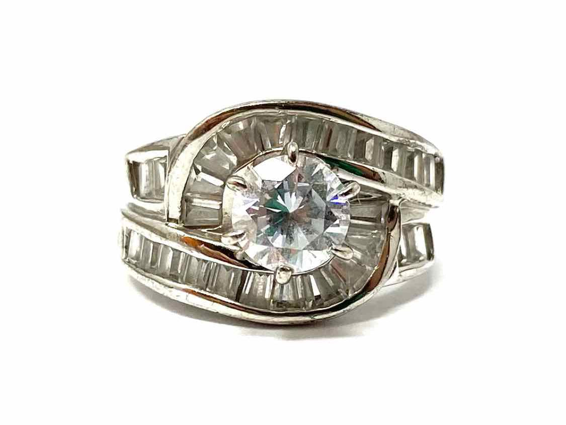 Estate size 7 .925 Silver Woven Round Cubic Zirconia Ring