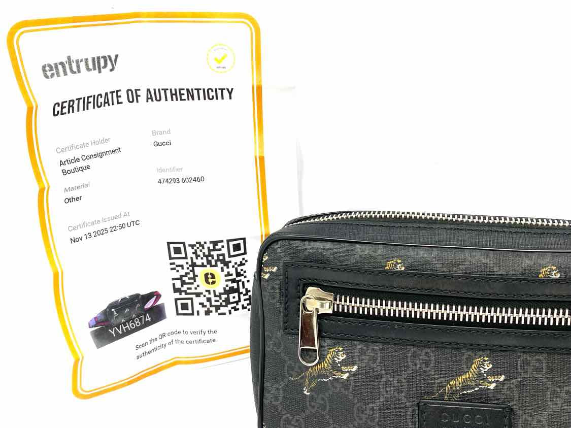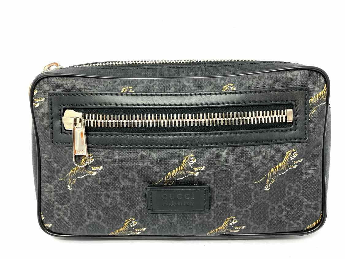 Gucci Tiger Coated Canvas Black GG SUPREME Waist Bag