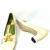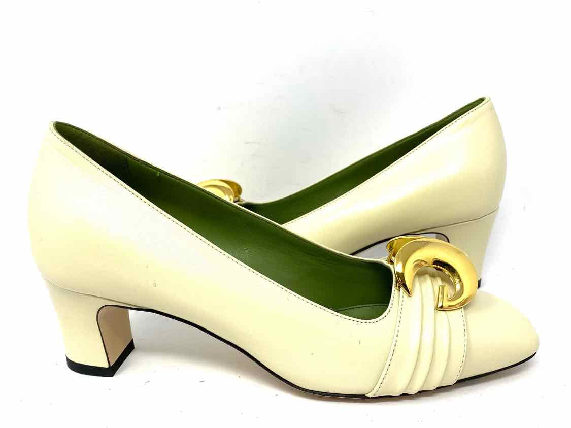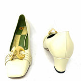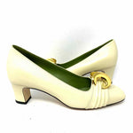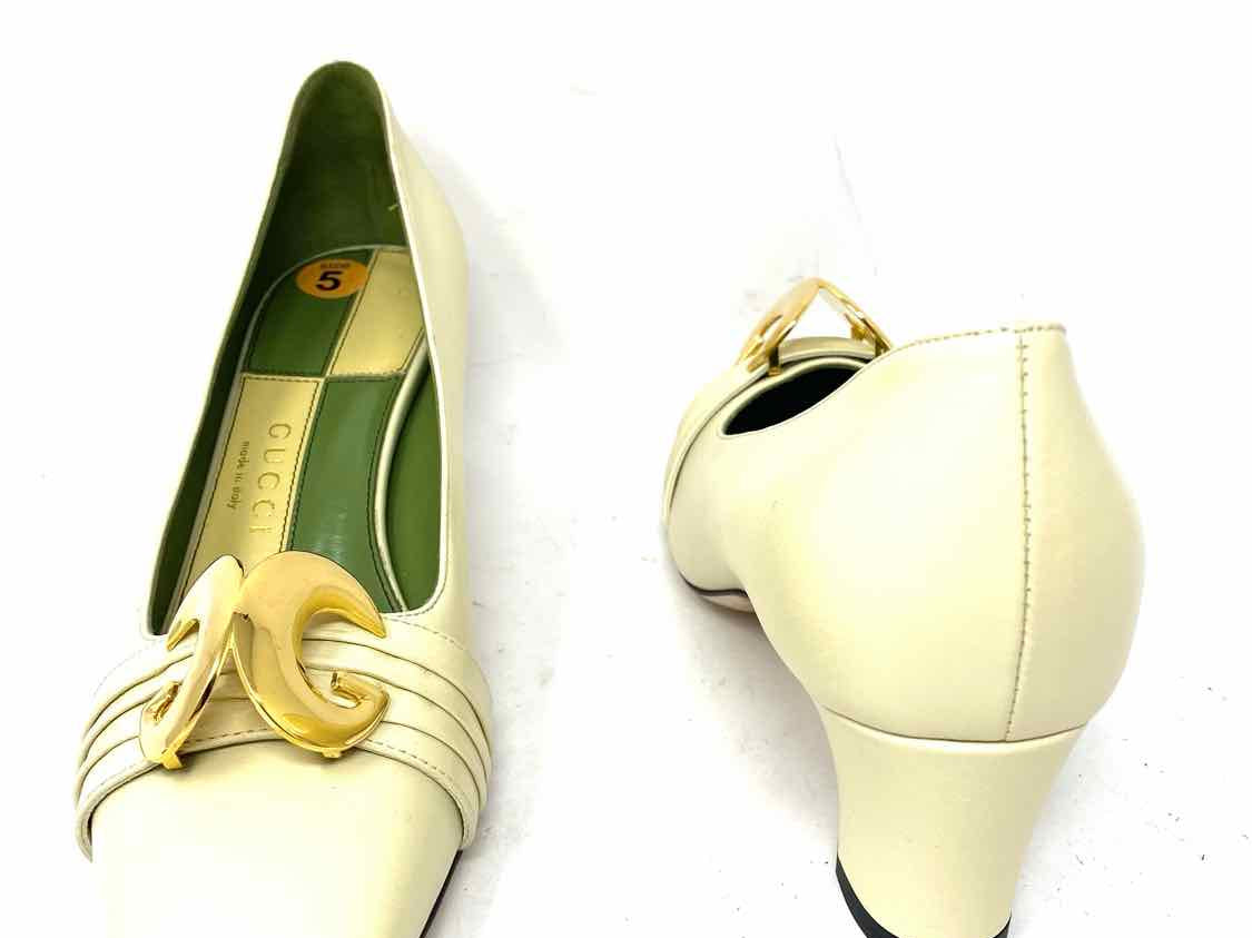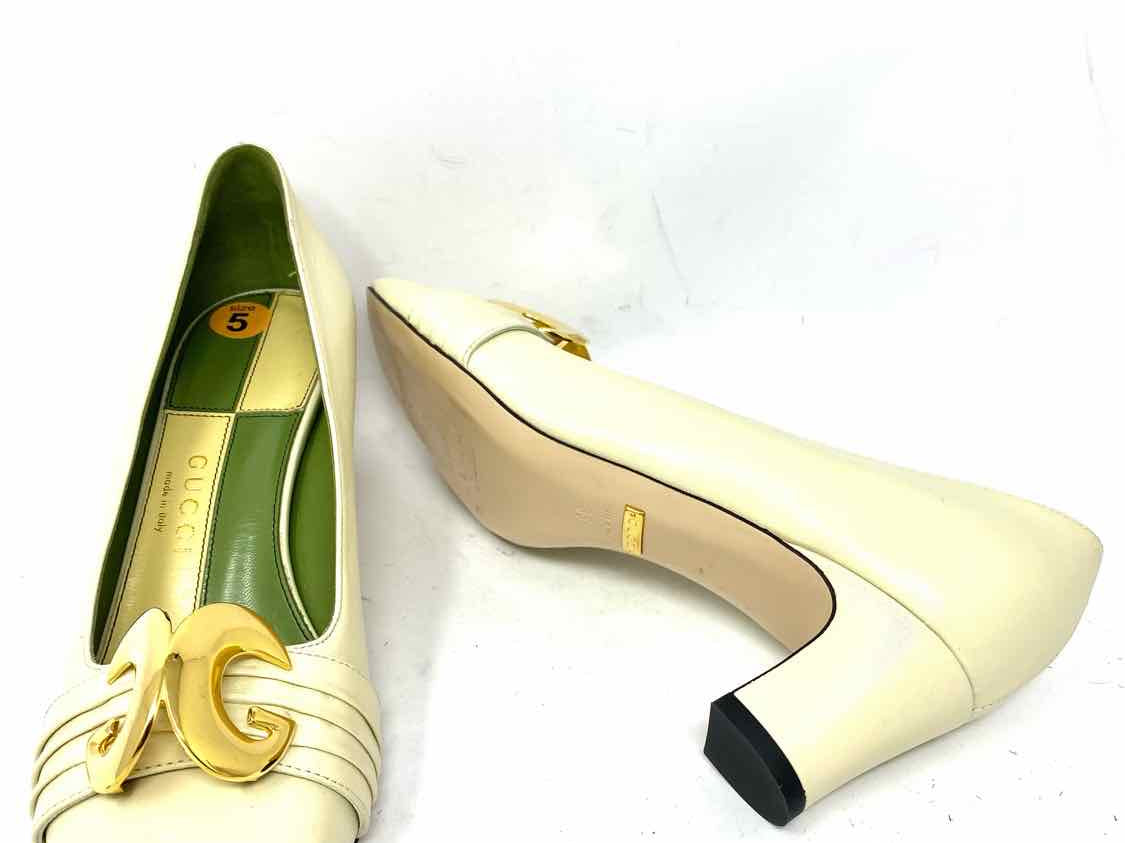 Gucci Malaga Kid Half Moon GG Women's Cream Size 35/5 Square toe Leather Pumps