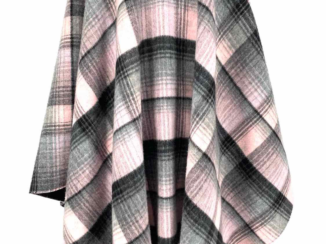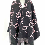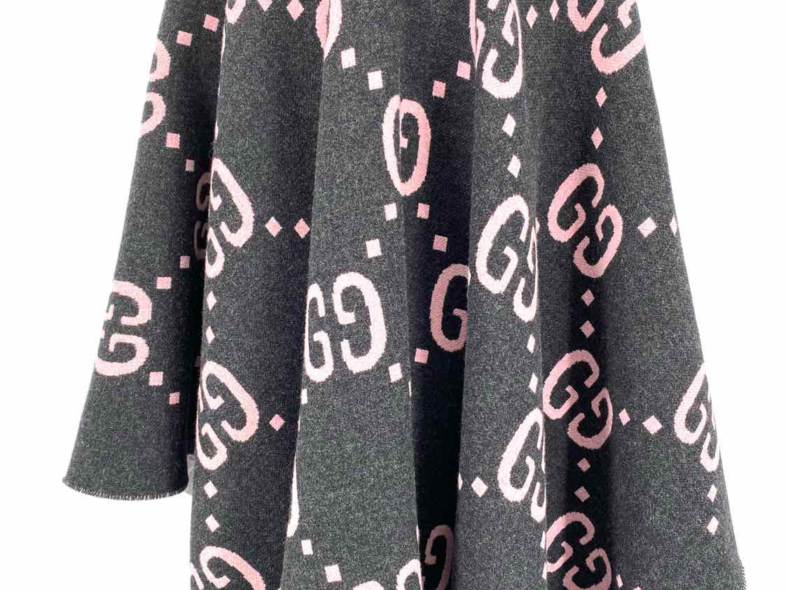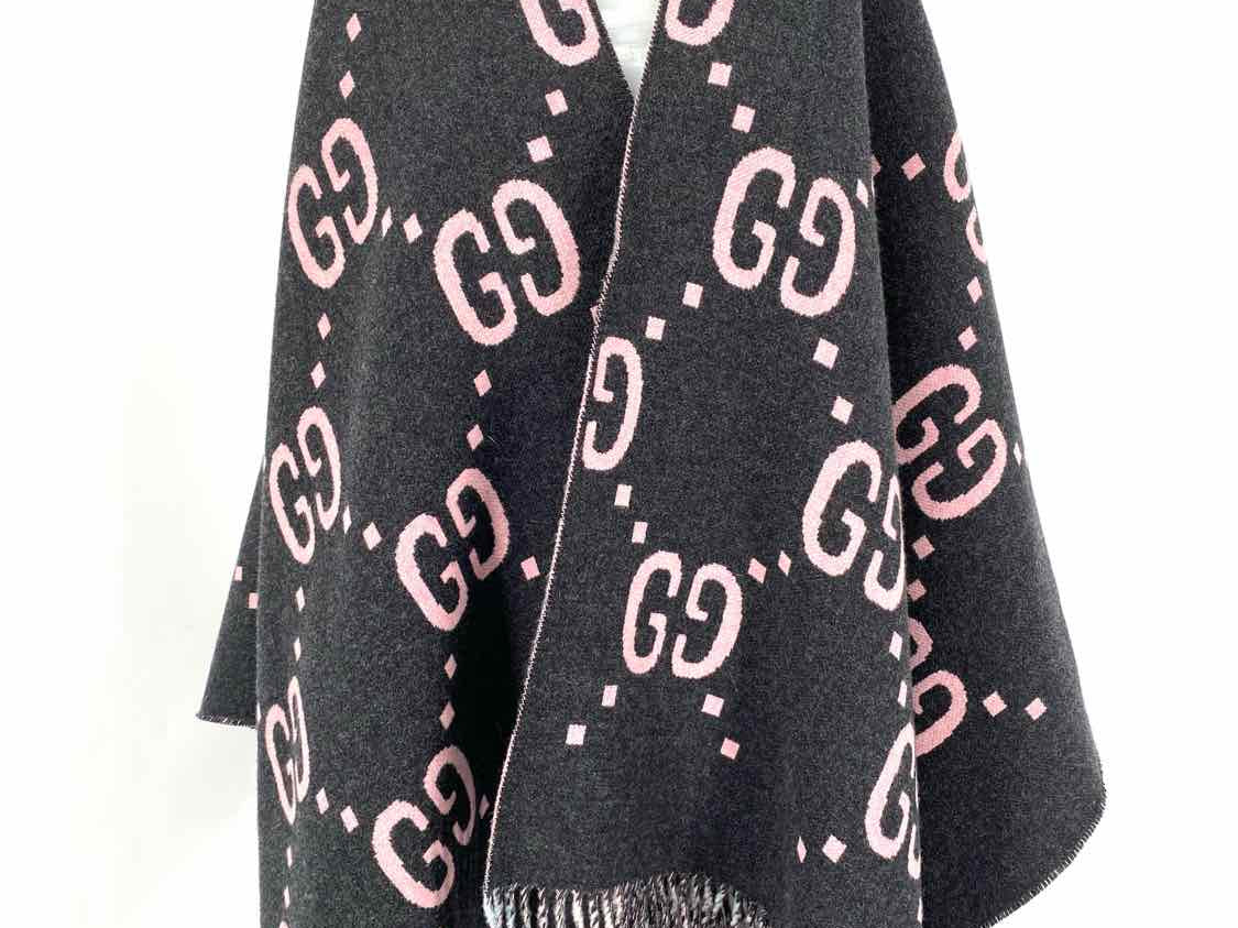 Gucci Wool Pink & Gray Poncho Reversible GG Plaid Shawl