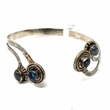 .925 Silver Tone / Blue Cuff Labradorite Vintage Bracelet