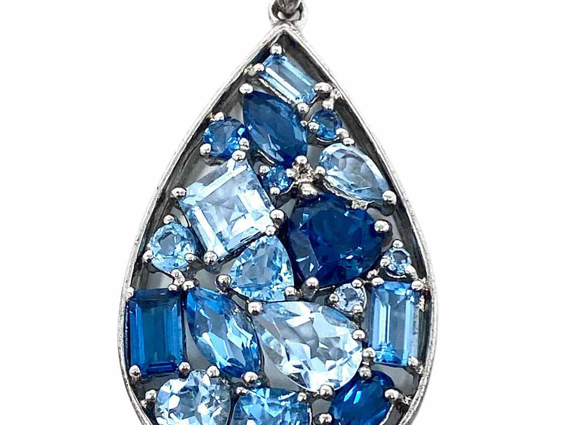 .925 Sterling Blue Teardrop 18 in Stone Necklace