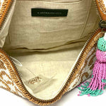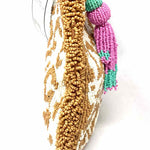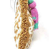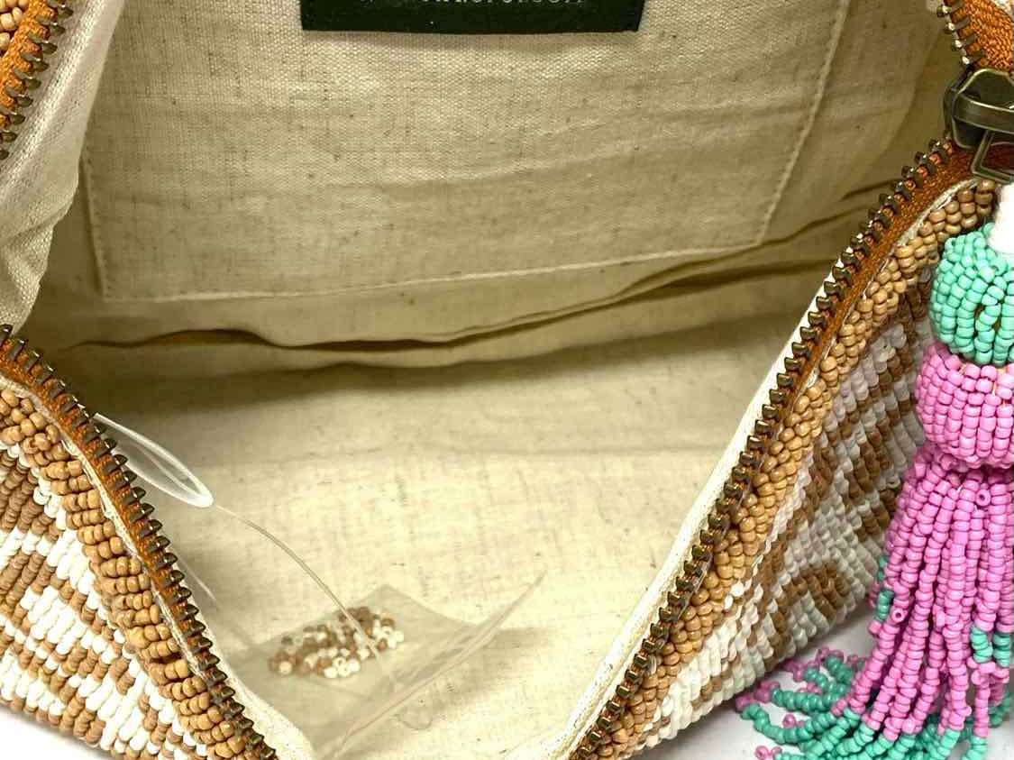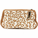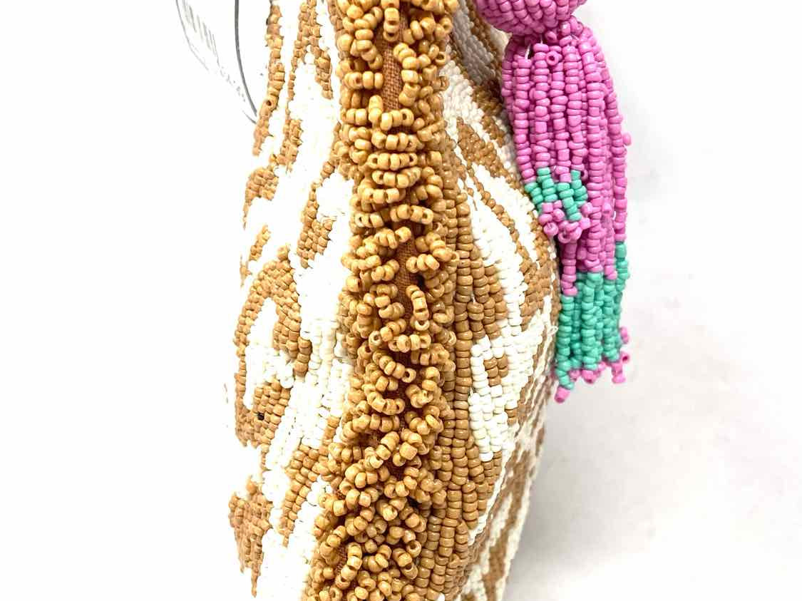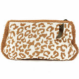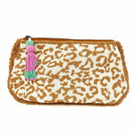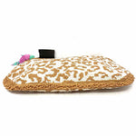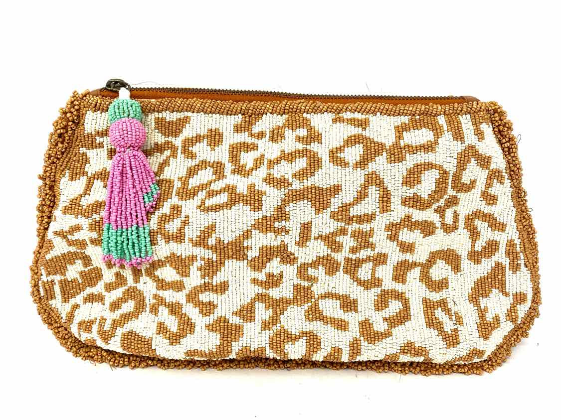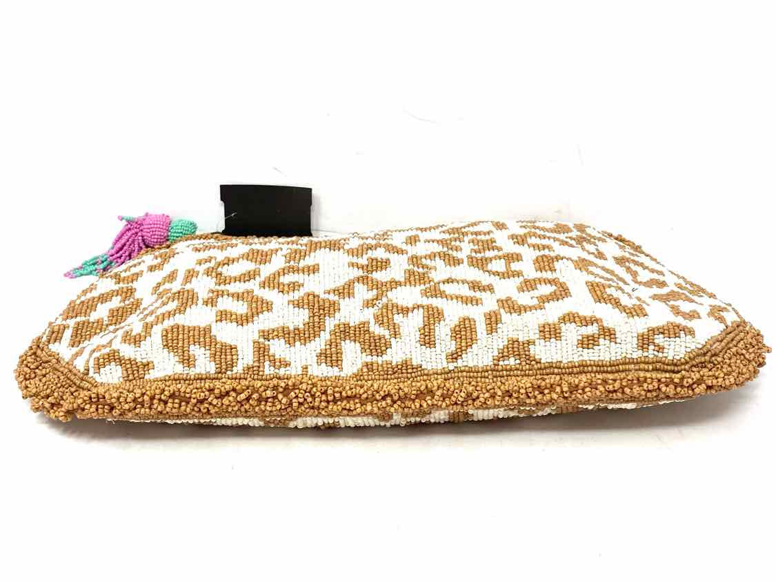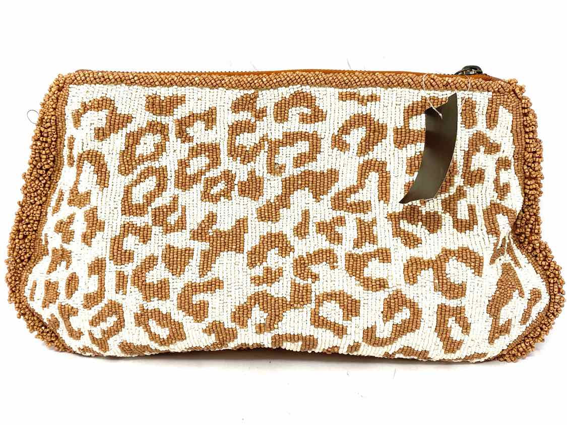 Anthropologie Beige White Beaded Cheetah Print Clutch