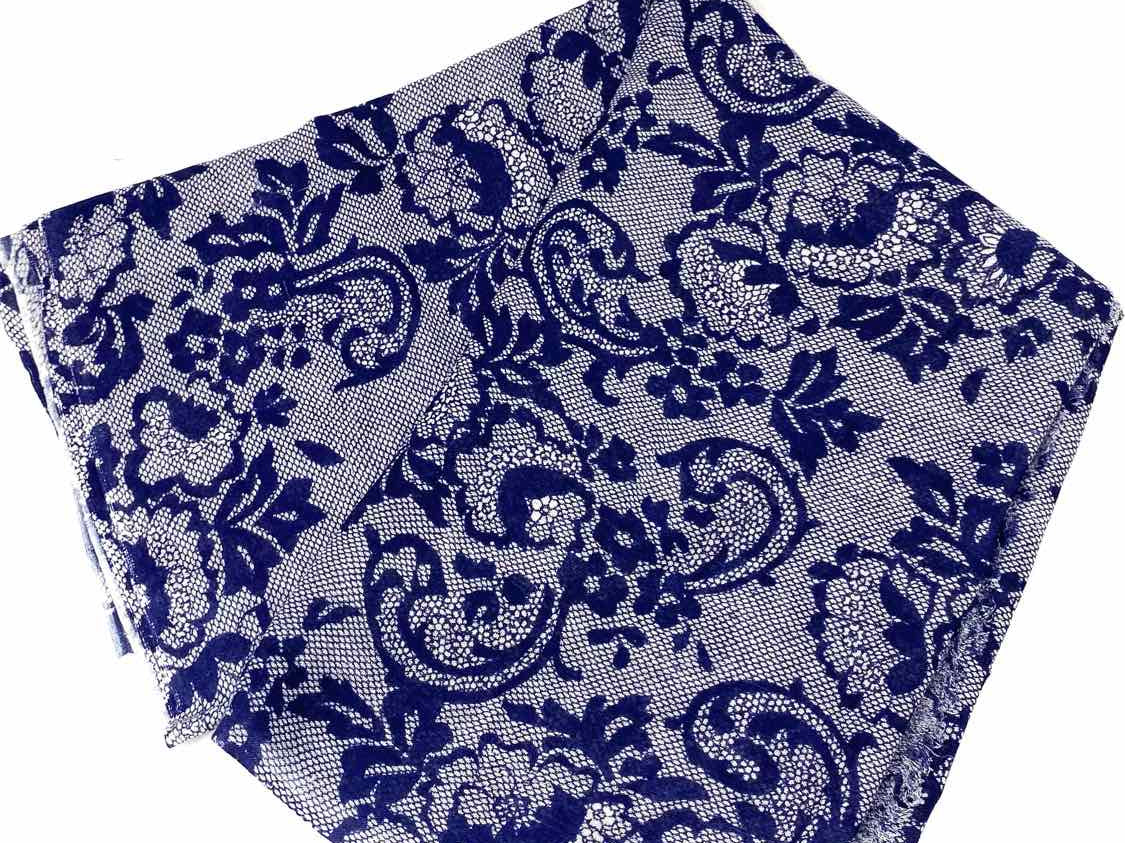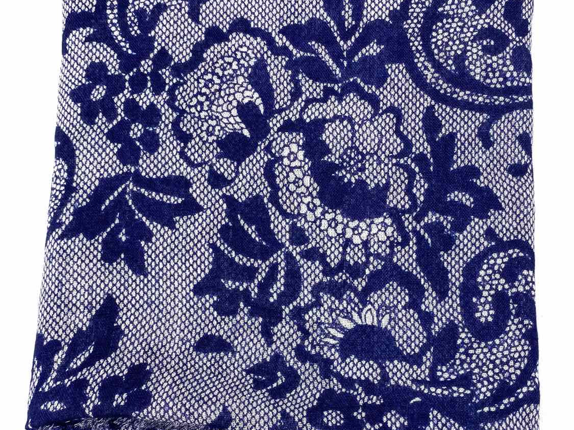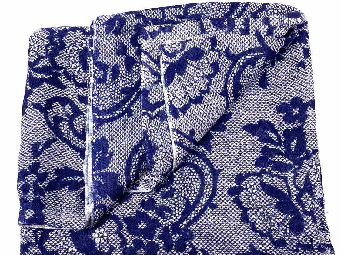 Blue / White Long 70 in Floral Lace Print Scarf