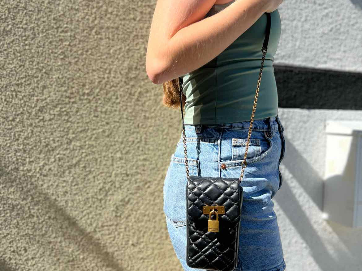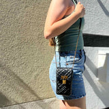 Kurt Geiger The Brixton Black Phone Holder Quilted Leather Crossbody