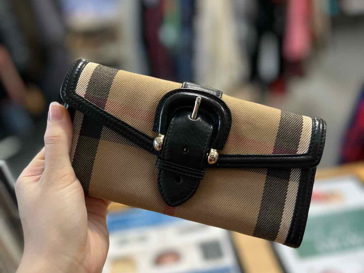 Burberry Brown Black Buckle Envelope Nova Check Continental Wallet