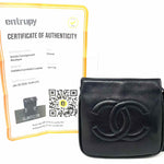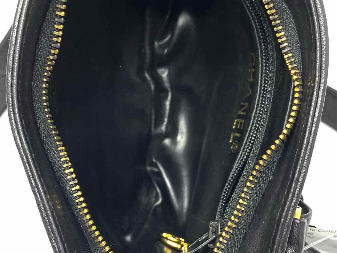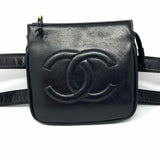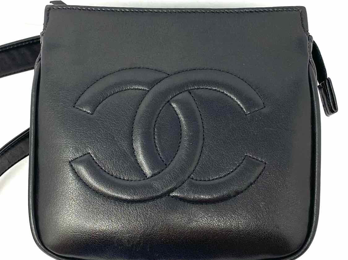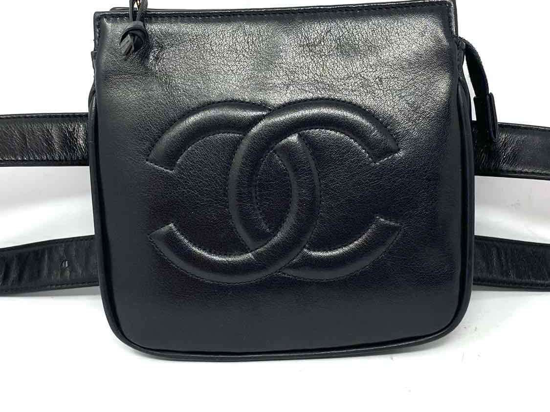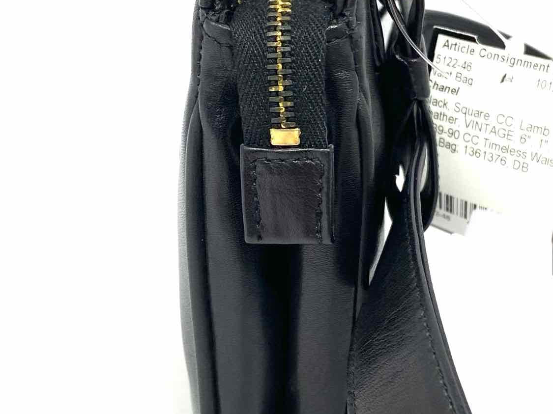 Chanel 1989-91 CC Timeless Zip Black Square Lamb Leather Waist Belt Bag