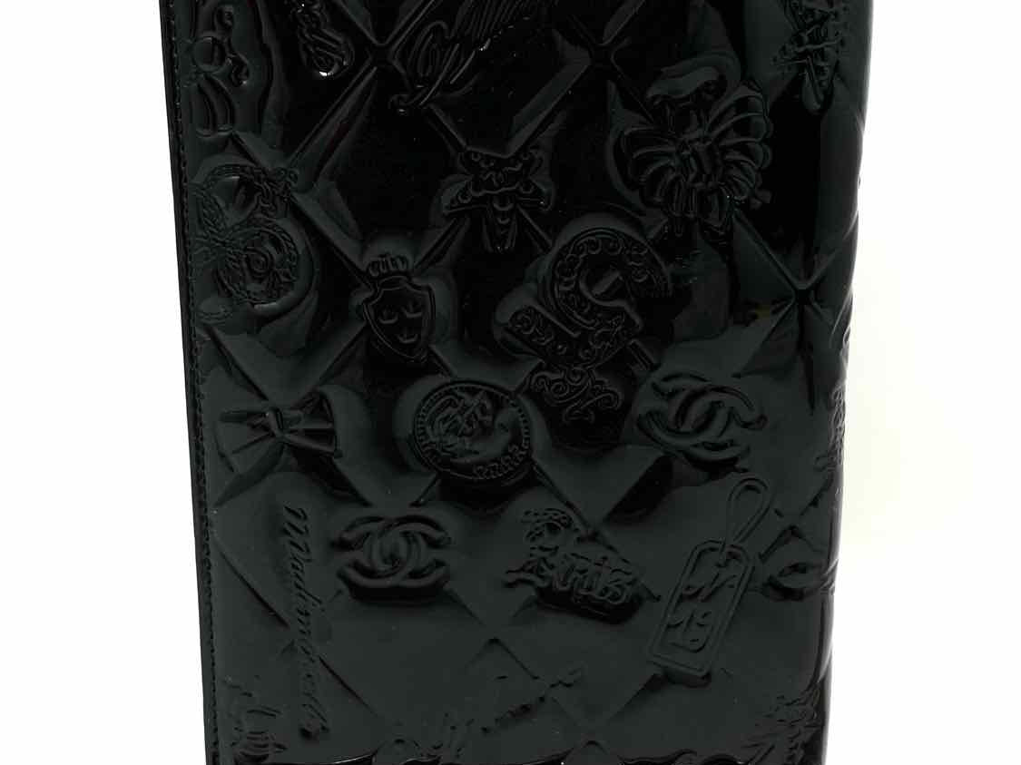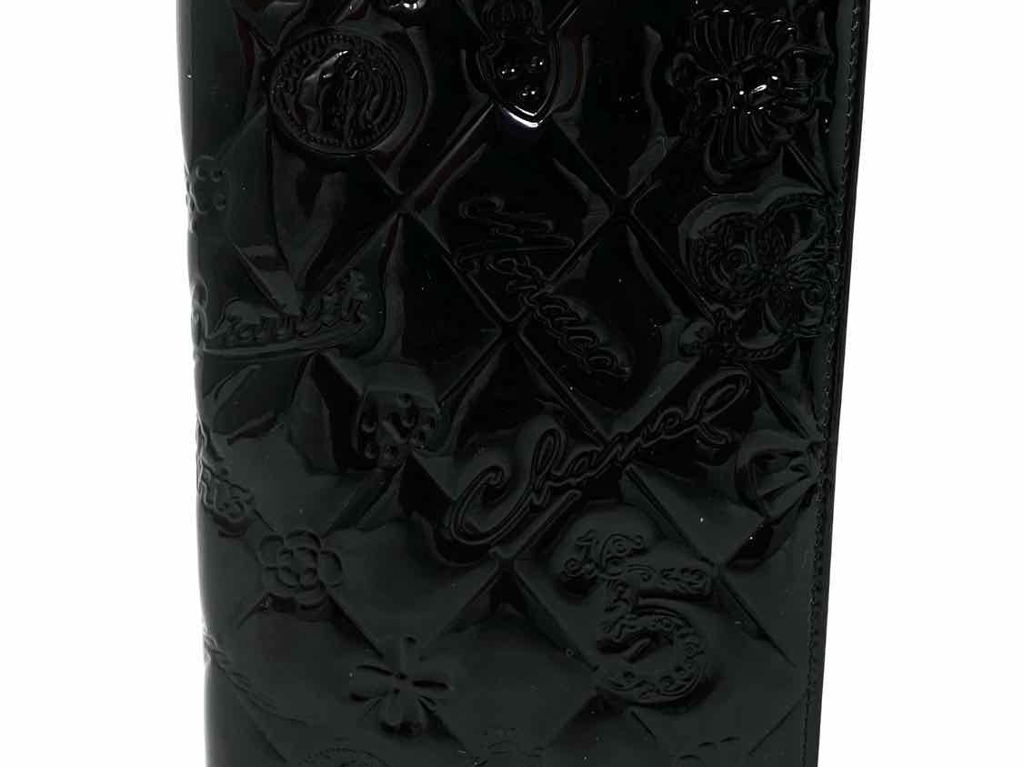 Chanel 2012/2013 Icon Black Bi-Fold Quilted Patent Leather Wallet