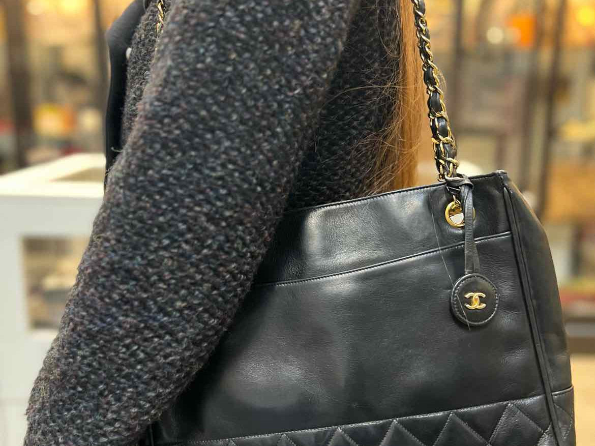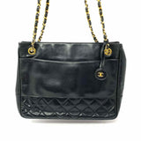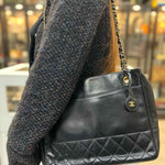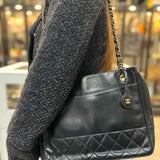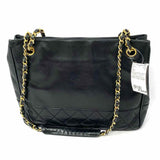 Chanel 1986-88 Vintage Black Quilted CC Leather Shoulder Bag