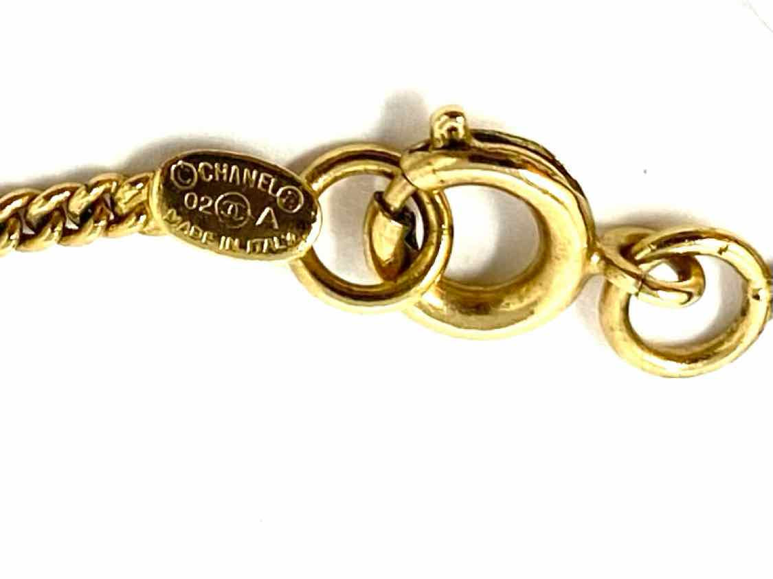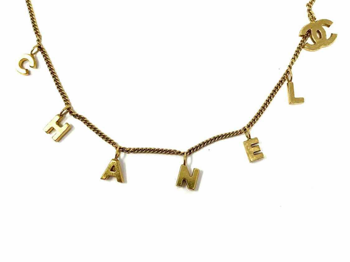 Chanel 2002 Autumn Collection "CHANEL" Gold Tone Charm Logo Necklace
