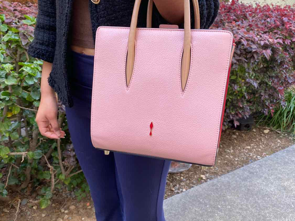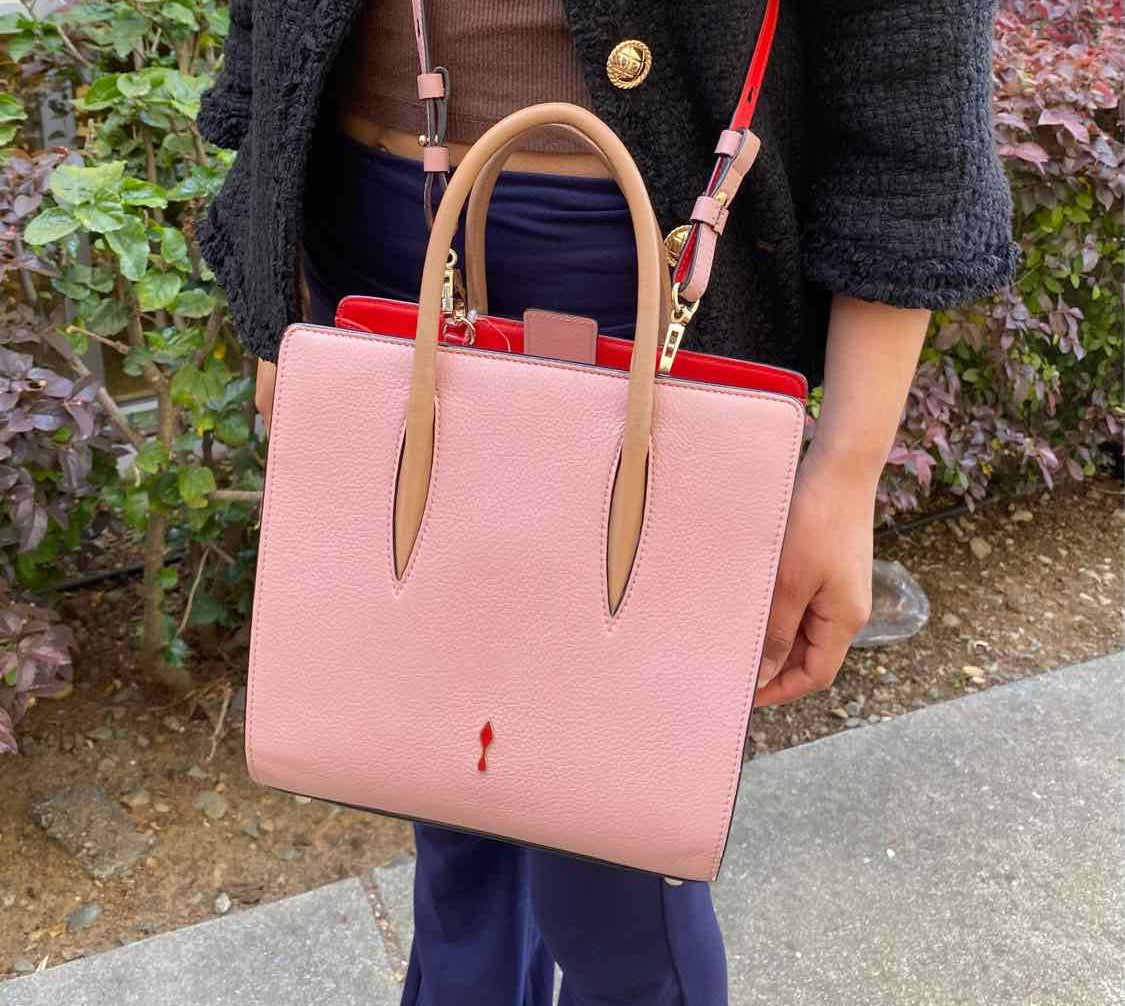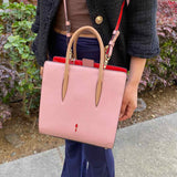 Christian Louboutin Paloma Mini Spike Pink Red Beige Color Block Leather Tote