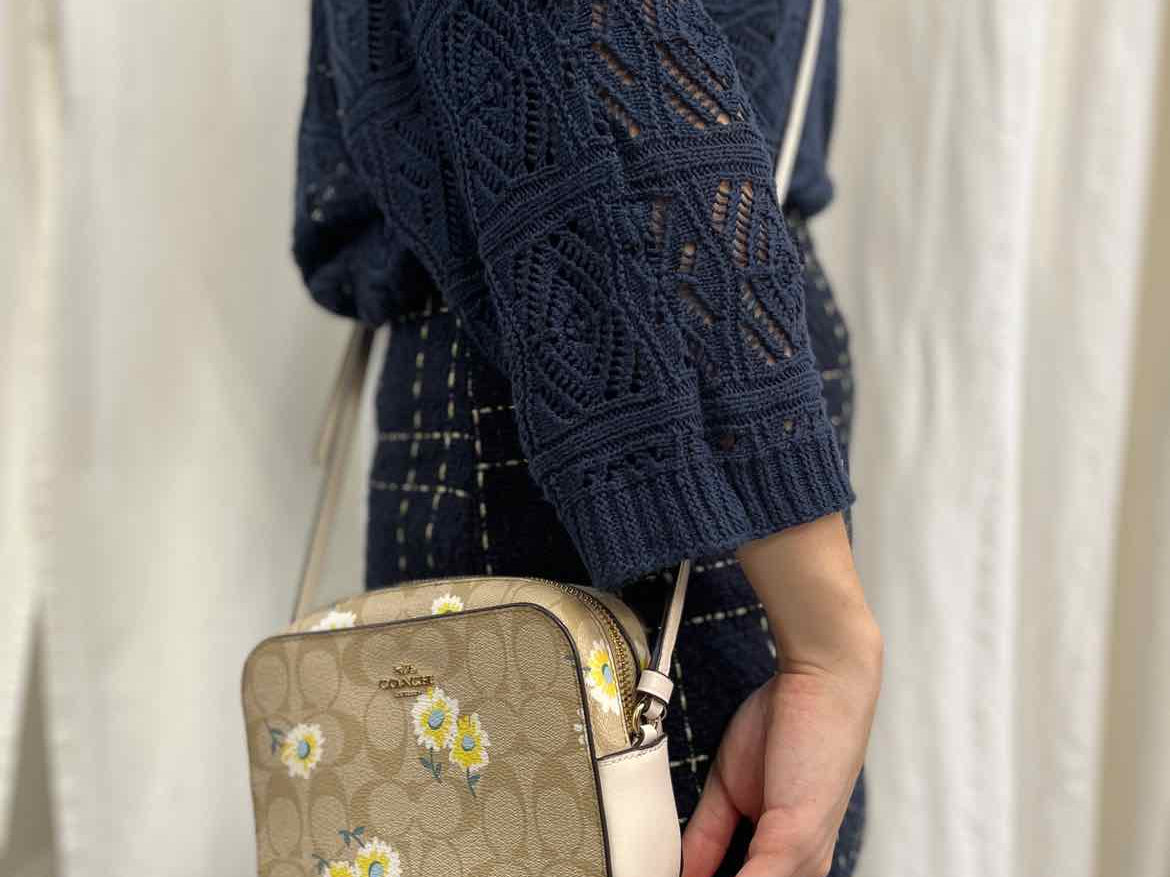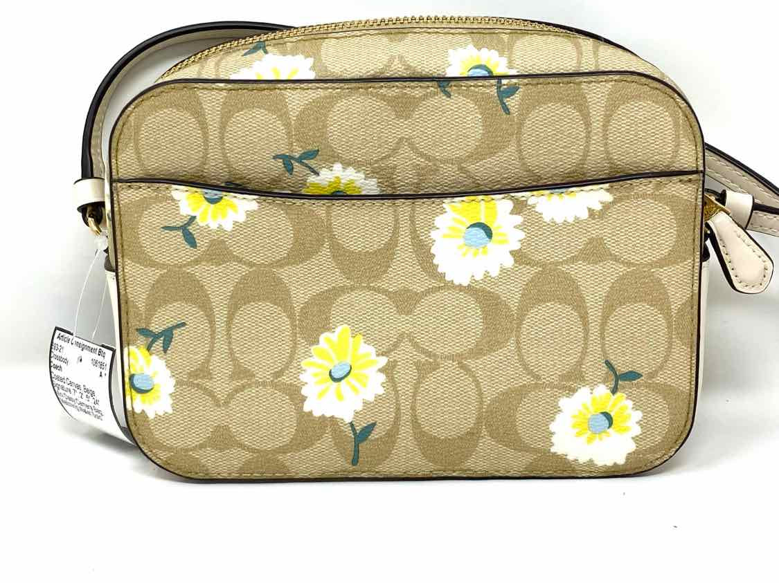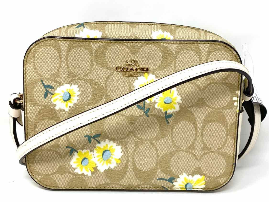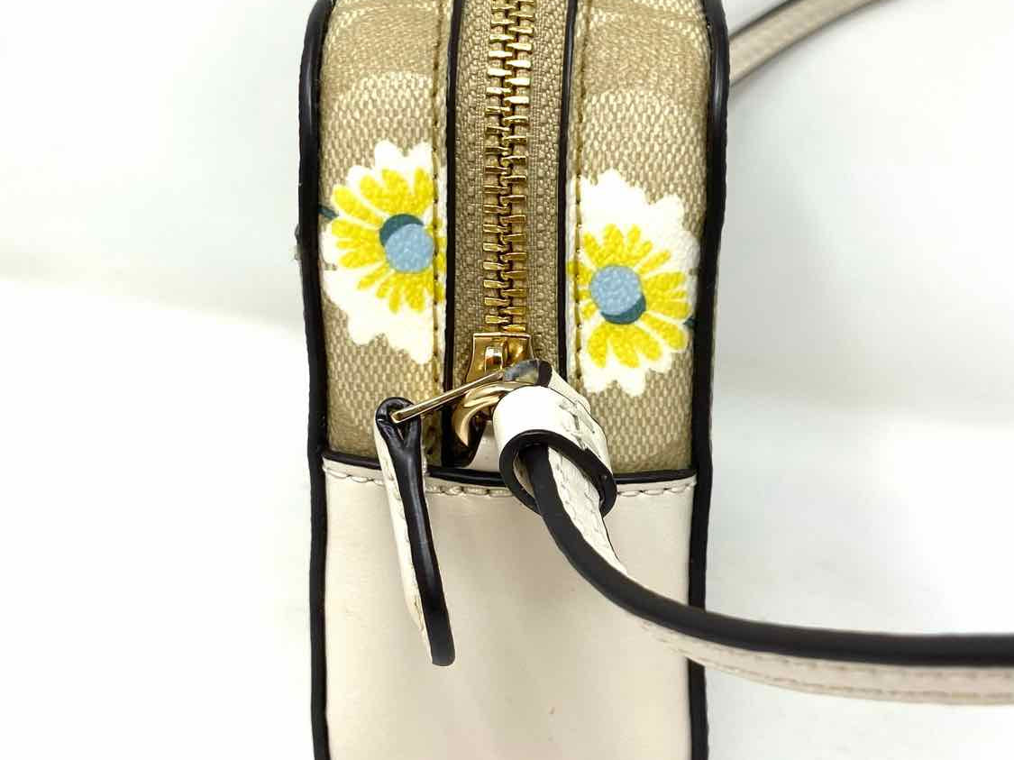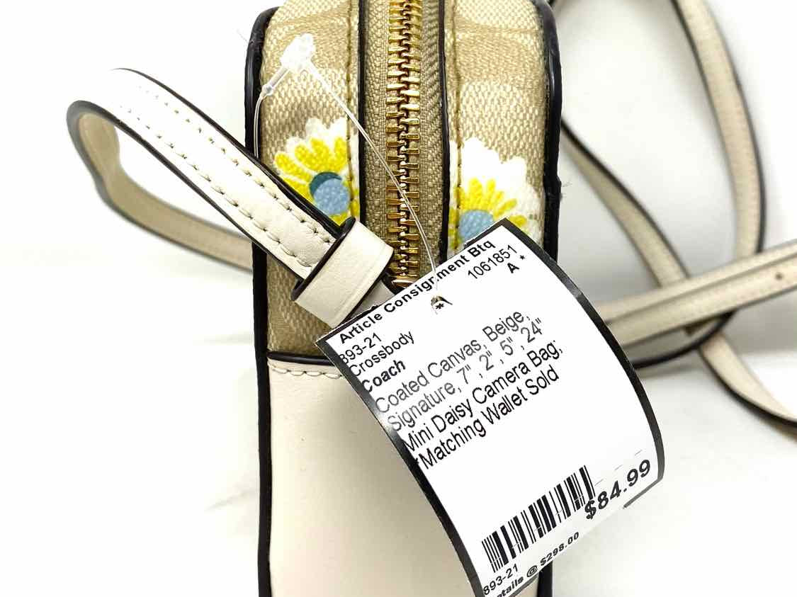 Coach Mini Daisy Camera Bag Coated Canvas Beige Camera Signature Crossbody