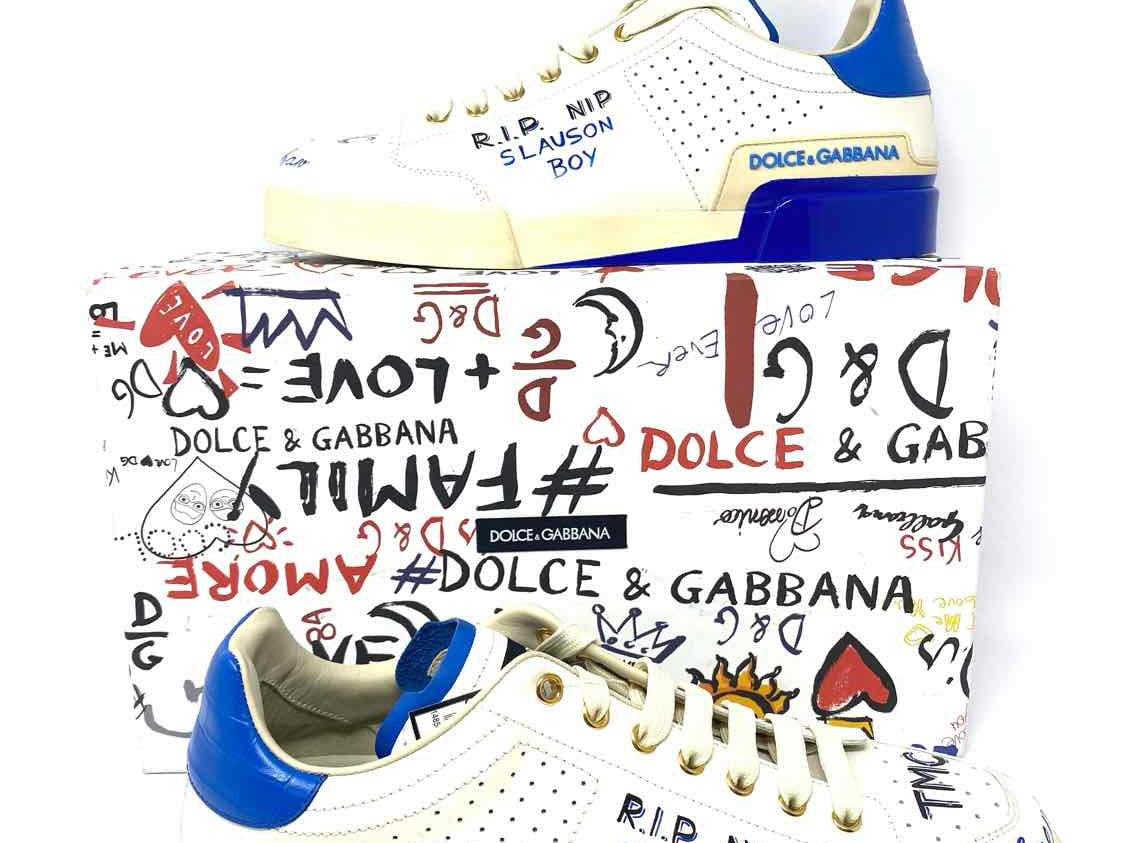 DOLCE & GABBANA Women's White Shoe Size 9.5 Graffiti Sneakers