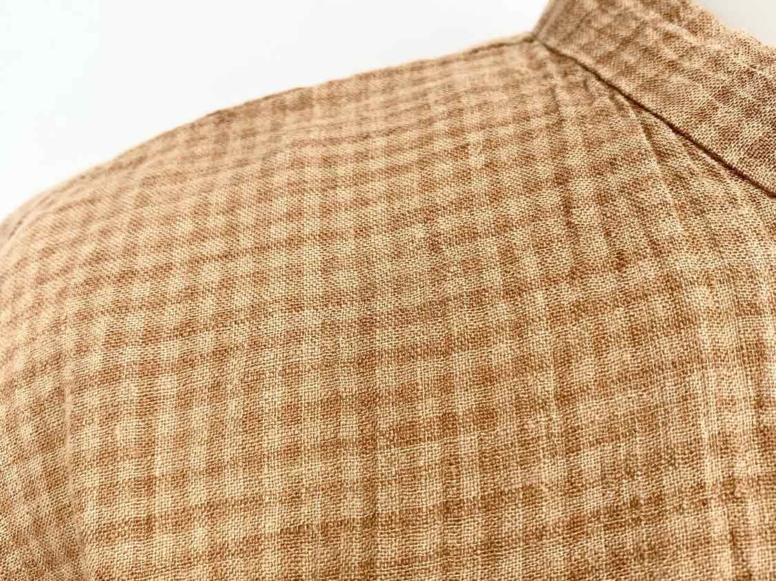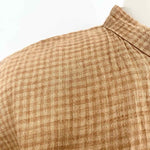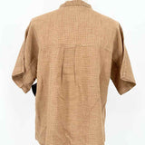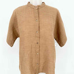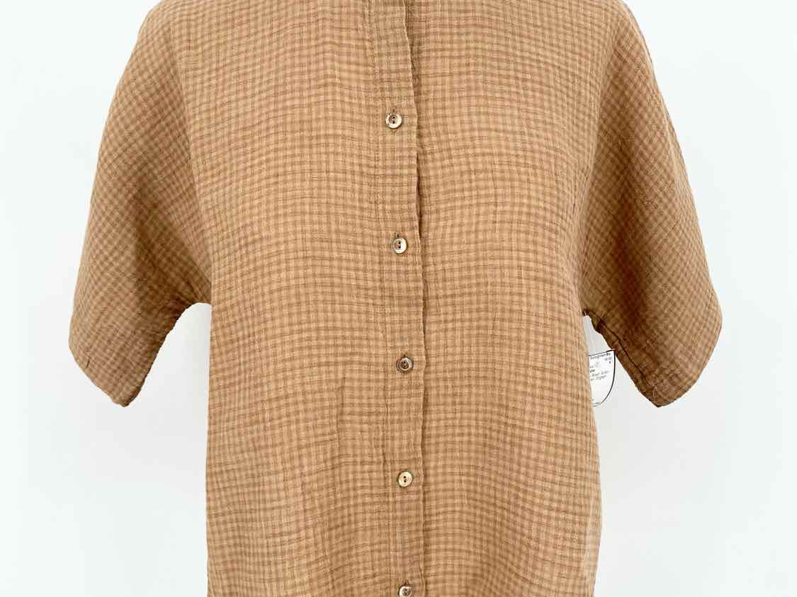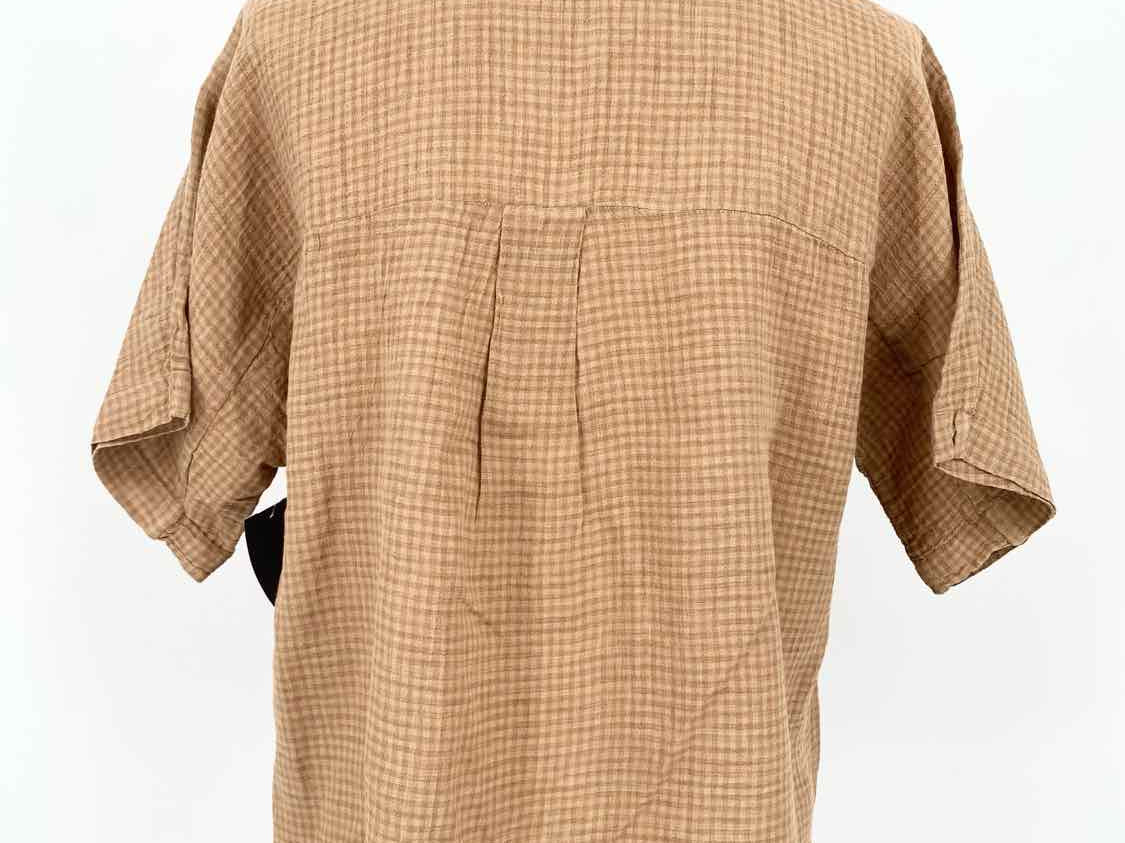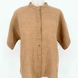 Eileen Fisher Women's Brown Size XXS Button Down Linen Gingham Short Sleeve Top