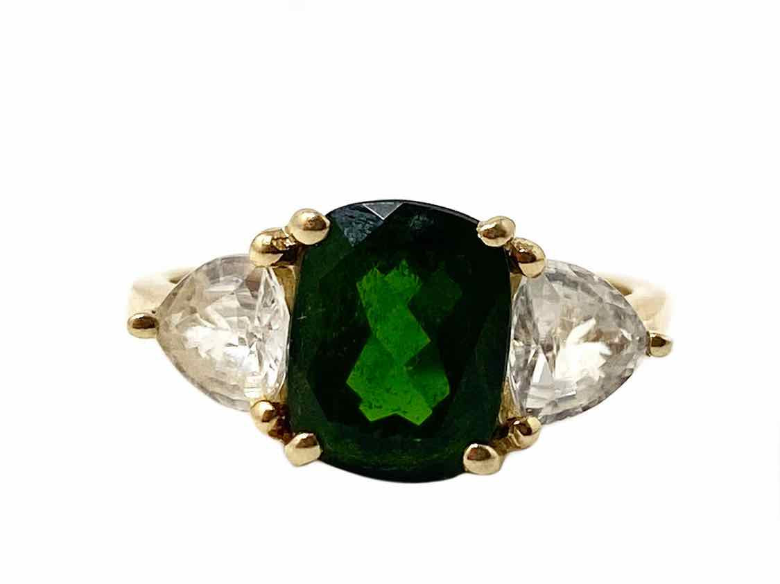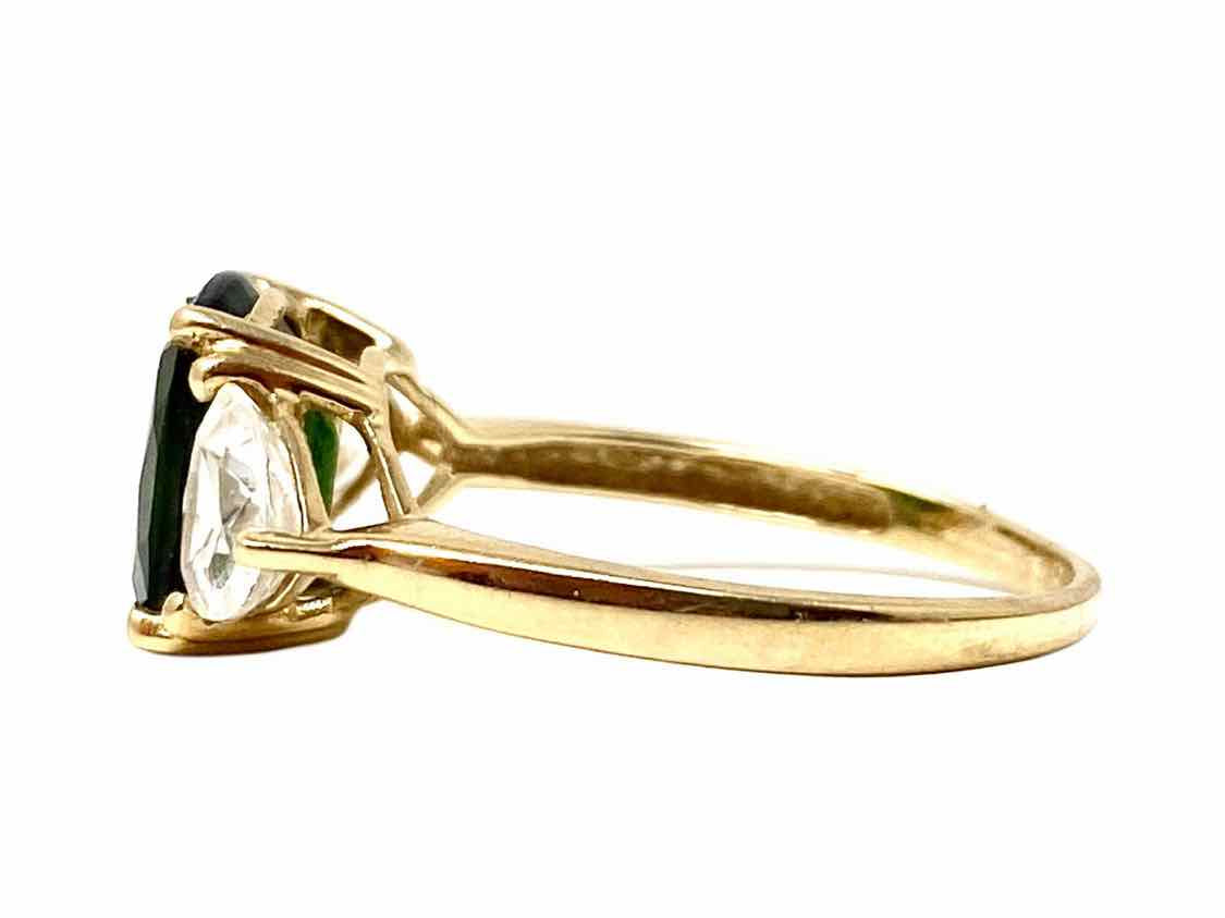 Estate Size 8.5 10K Gold Green Cubic Zirconia Ring