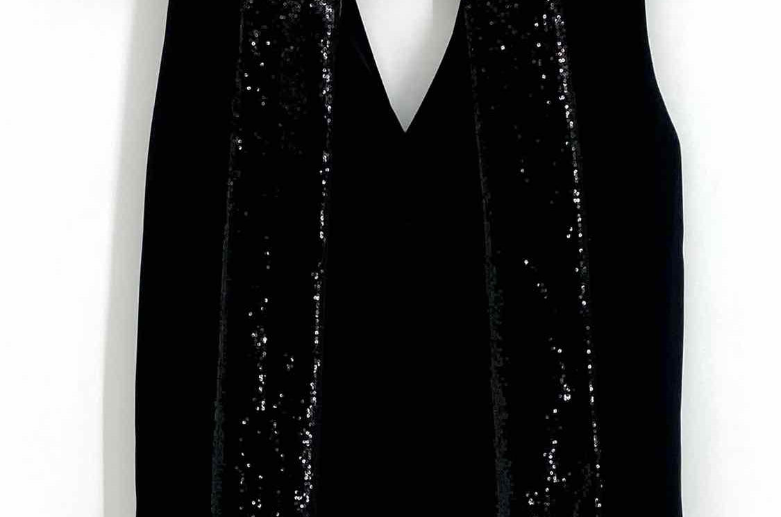 Galvan London Sequined Cortado Women's Black Size 2 V-Neck Satin Sleeveless