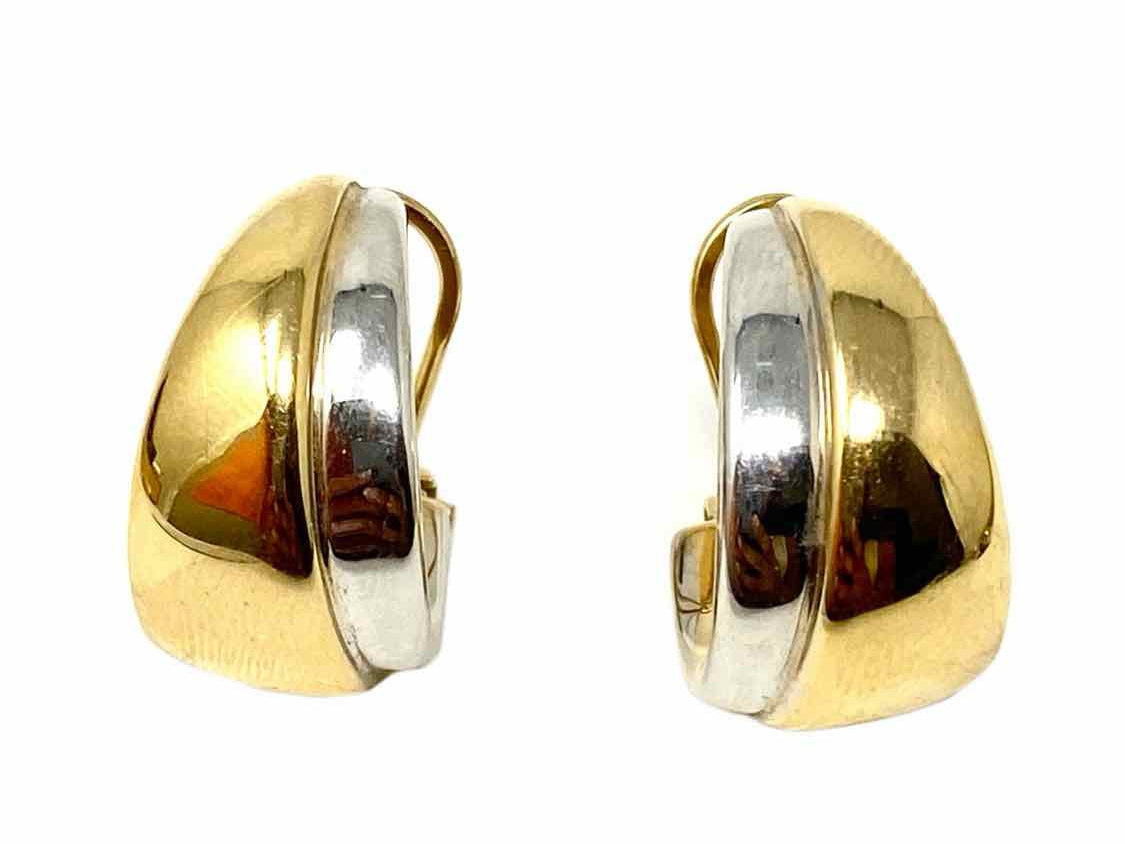 18K 750 White and Yellow Gold Huggie Earrings