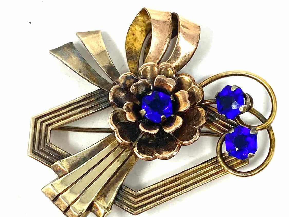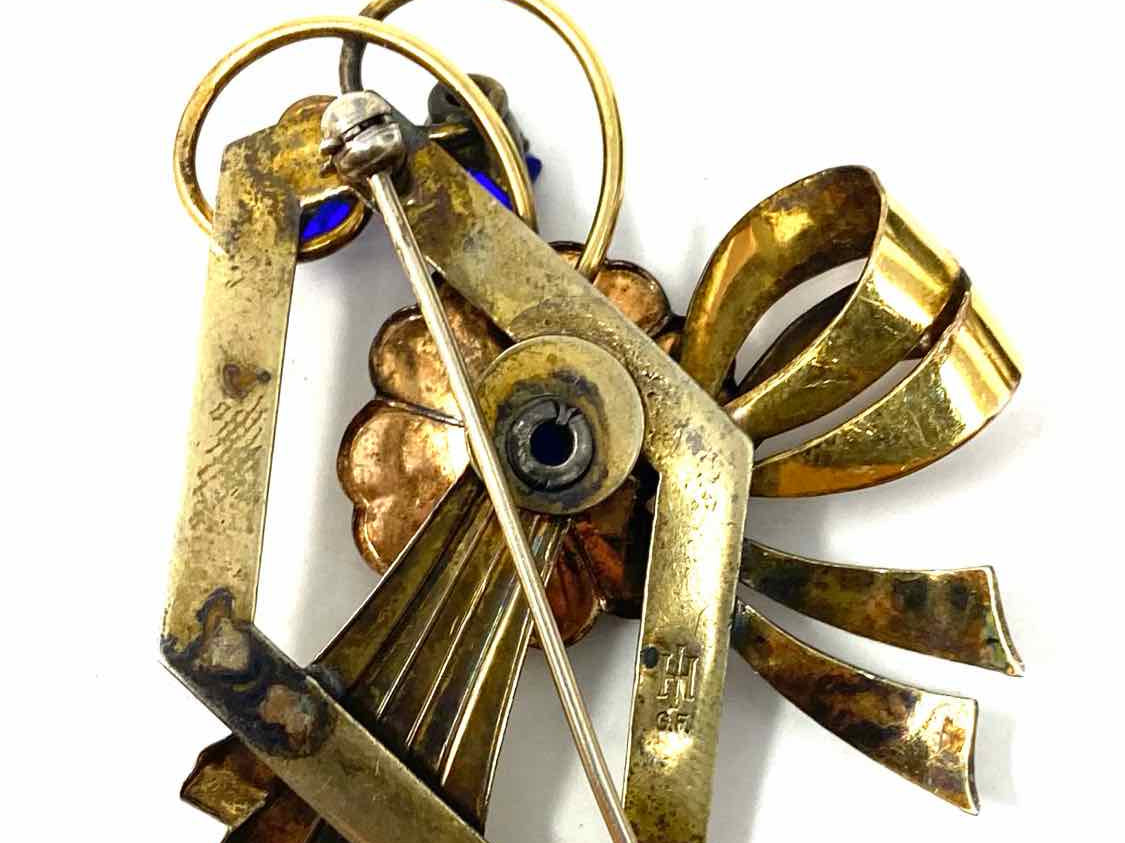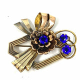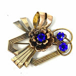 Harry Iskin Gold Filled Gold/Blue Flower Crystal Vintage Brooch
