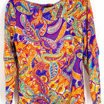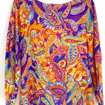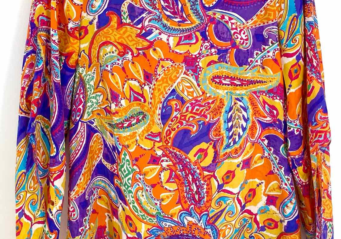 Lauren by RL Women's Multi-Color Size M Boatneck Silk Paisley Long Sleeve