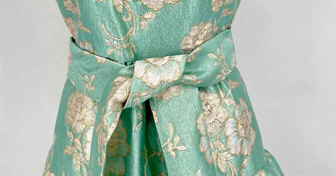 Maison Tara Women's Blue Size 4 Sleeveless jacquard Floral Dress