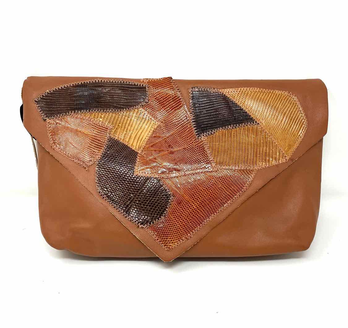 Mark Baren Brown Envelope Patchwork Leather Clutch