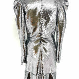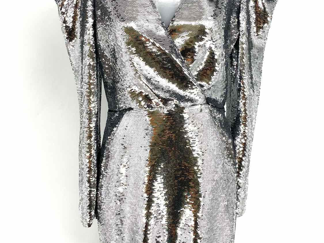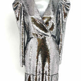 Michael by M. Kors Women's Silver Size S Faux Wrap Sequined Dress
