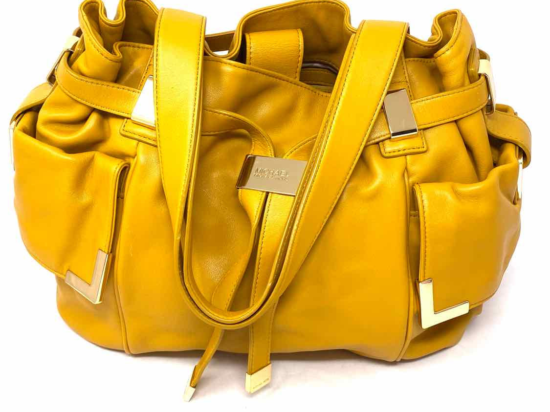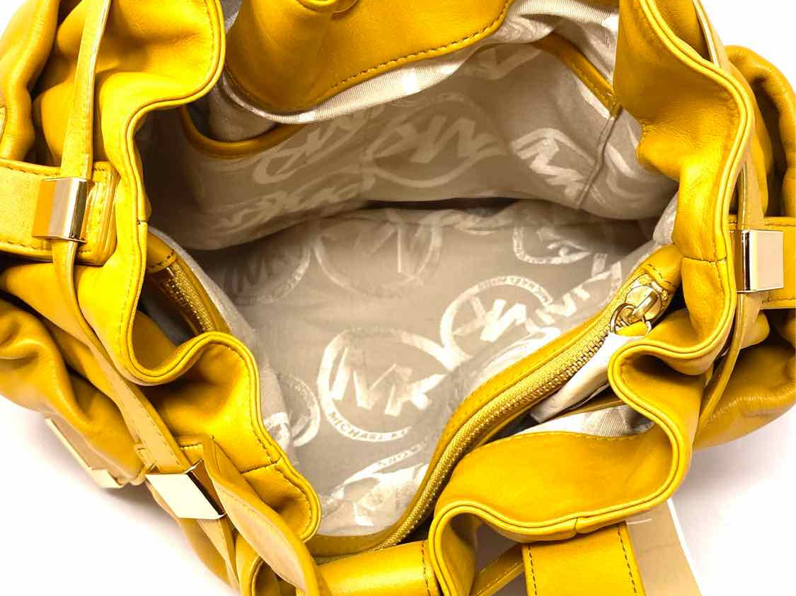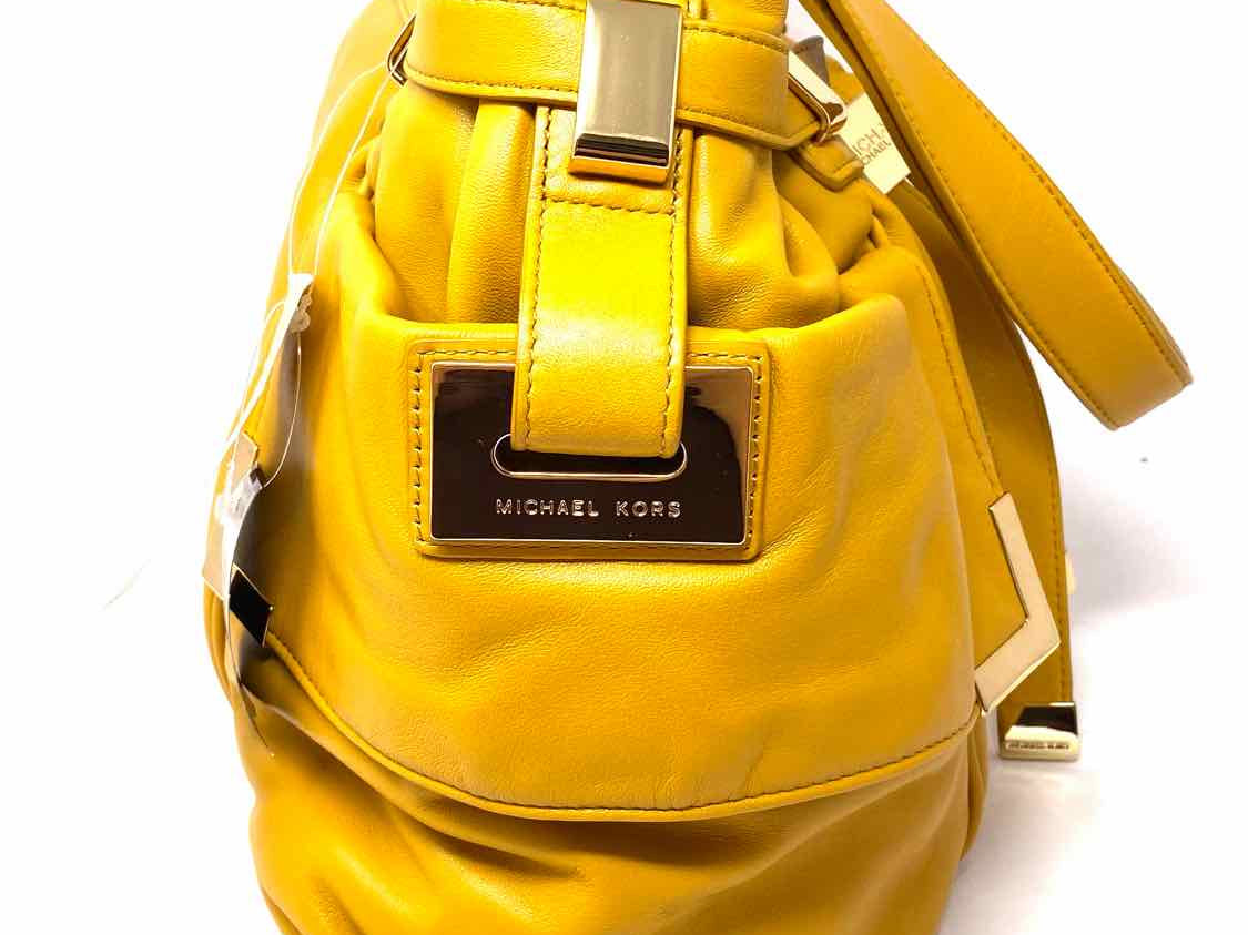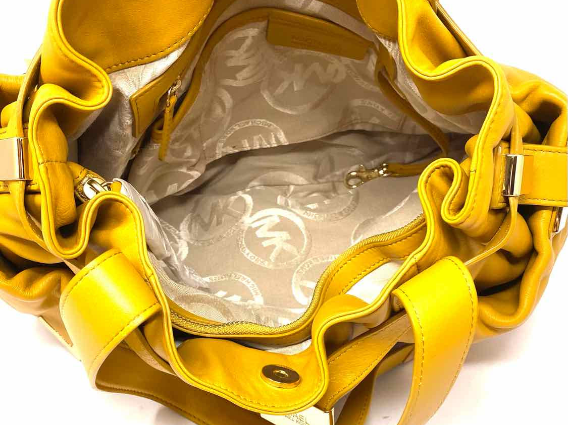 Michael by Michael Kors Beverly Mustard Drawstring Leather Satchel