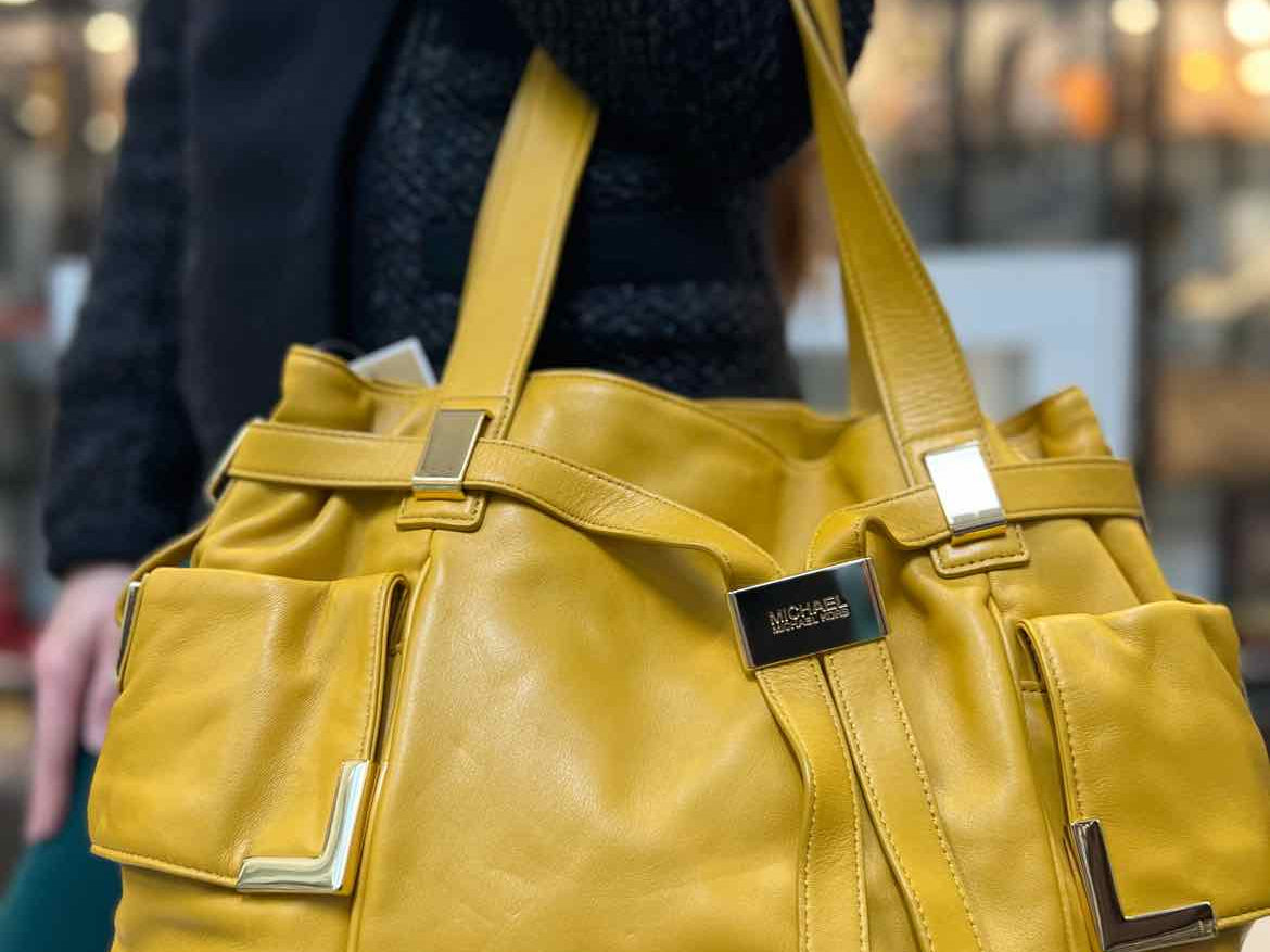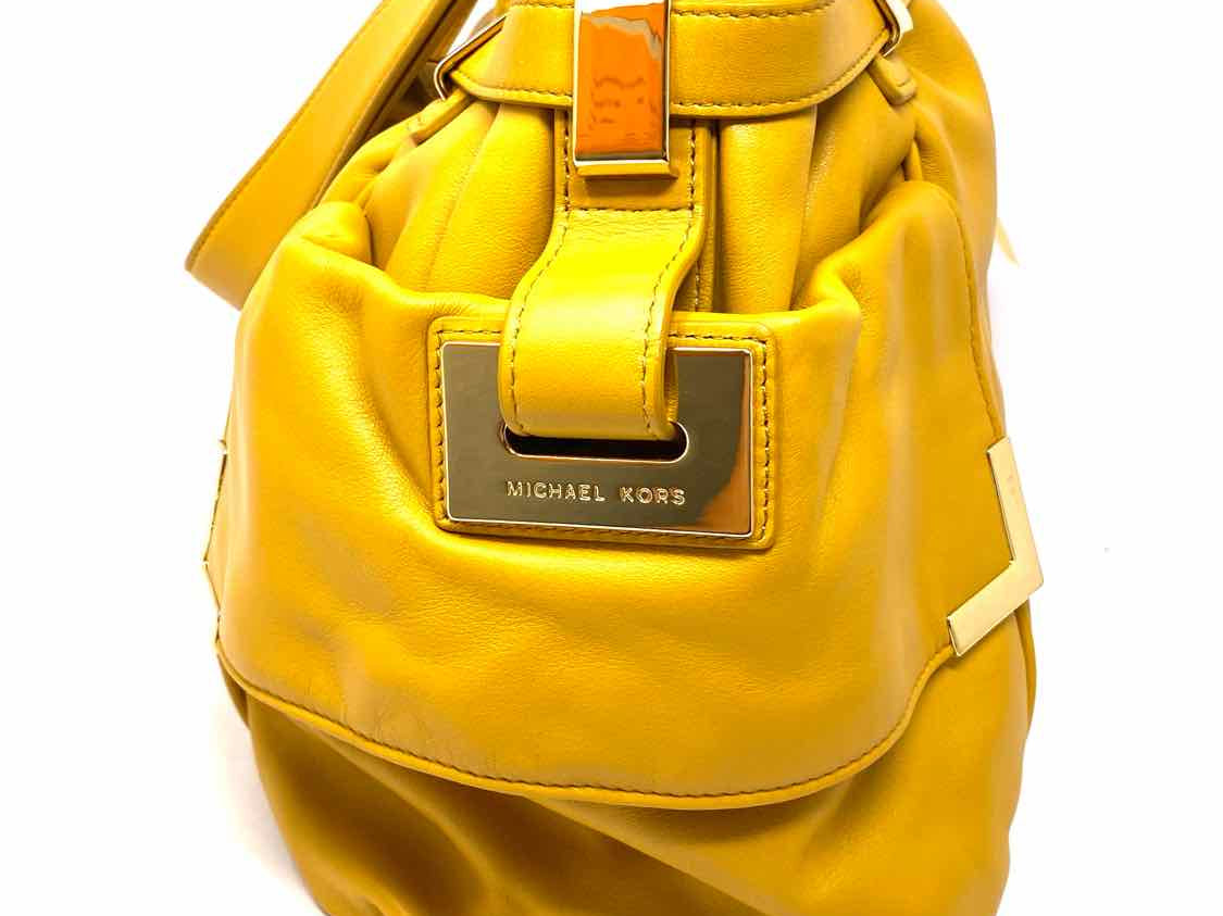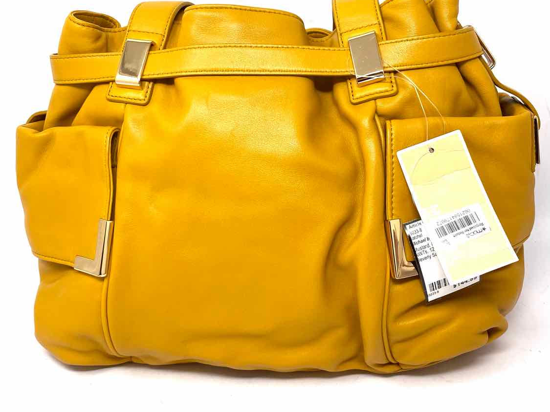 Michael by Michael Kors Beverly Mustard Drawstring Leather Satchel