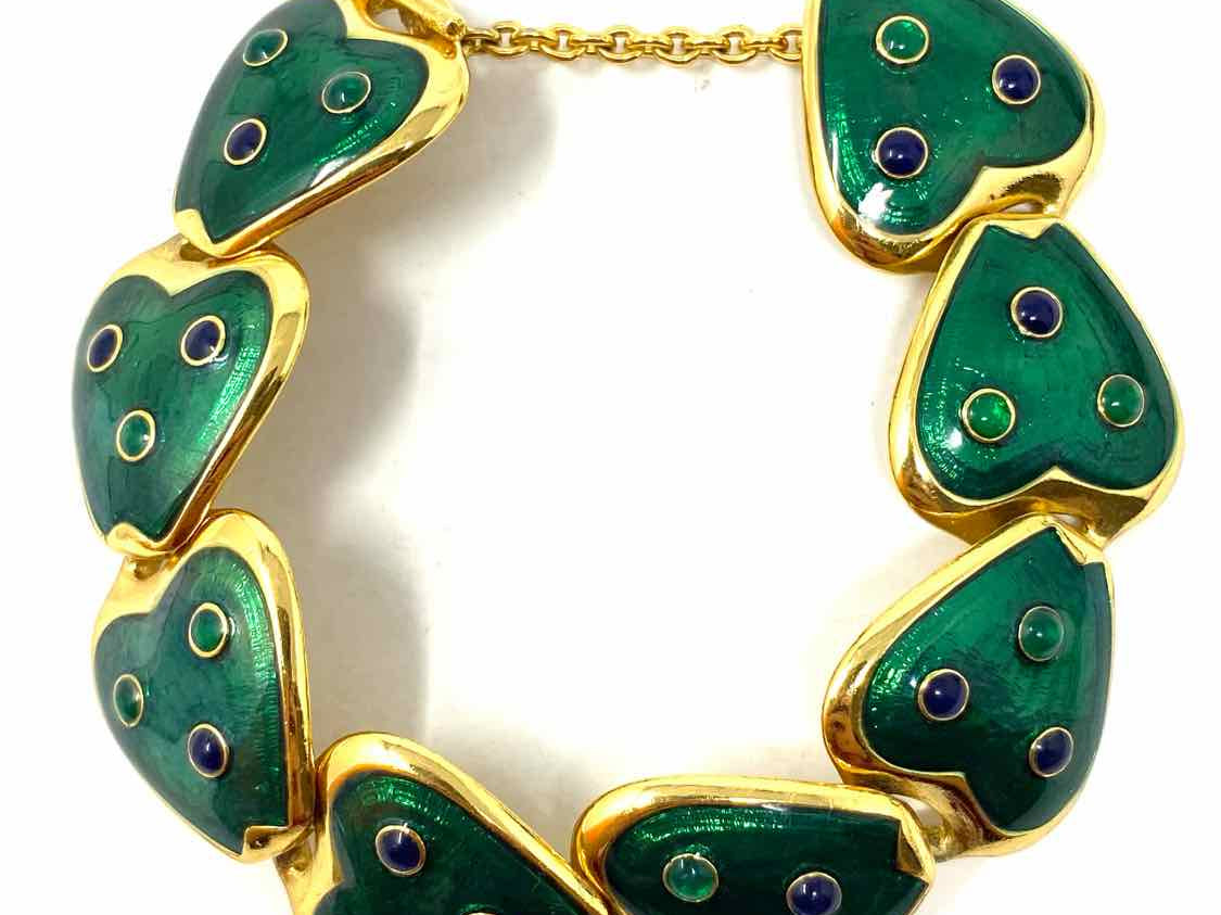 ORENA PARIS Metal Green Navy Enamel Link Bracelet