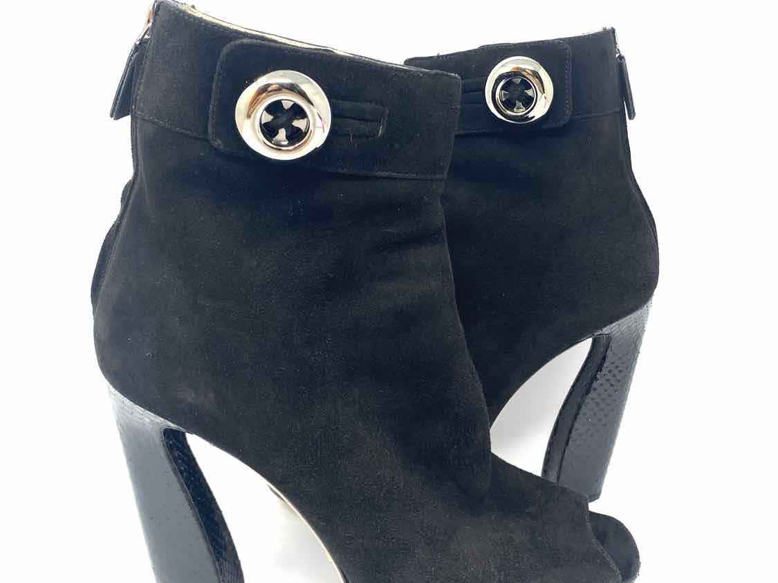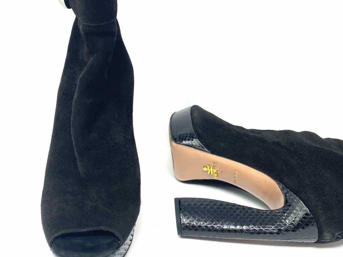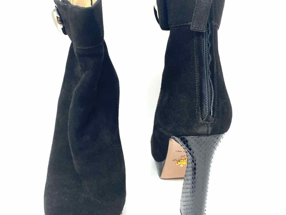Prada Women's Black Size 37/7 Peeptoe Suede Ankle Bootie