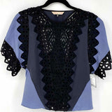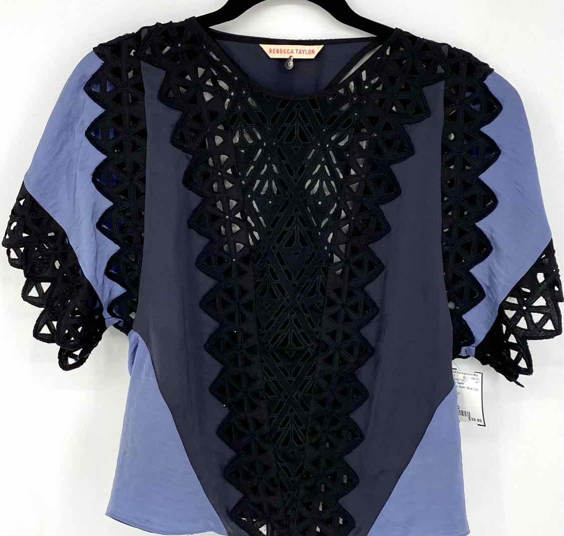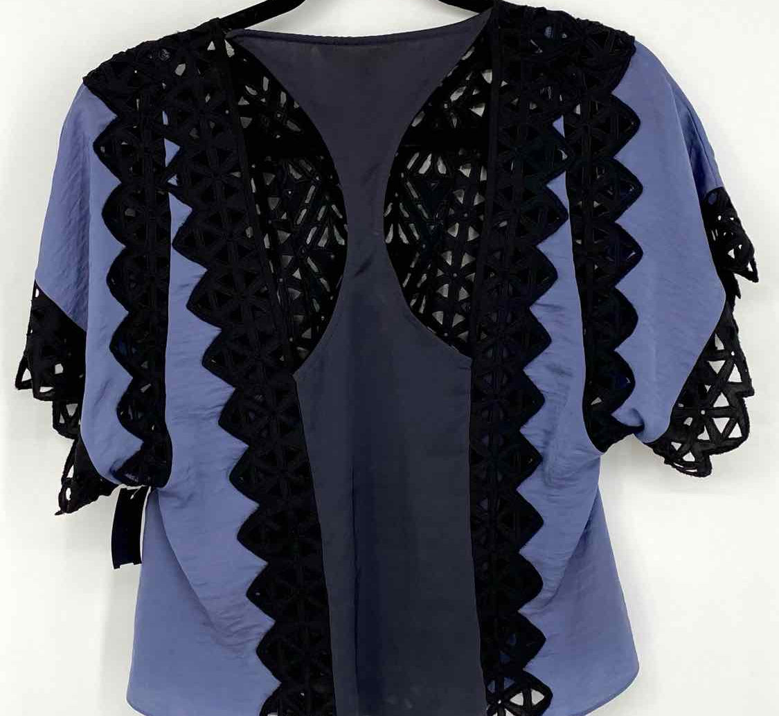 Rebecca Taylor Women's Black / Blue Size 0 Cut Out Short Sleeve Top