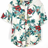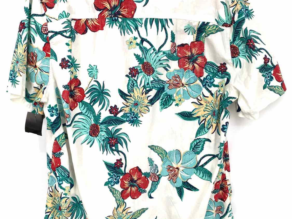 reyn spooner Men's White / Teal Size L Tropical Button Down Short Sleeve Shirt