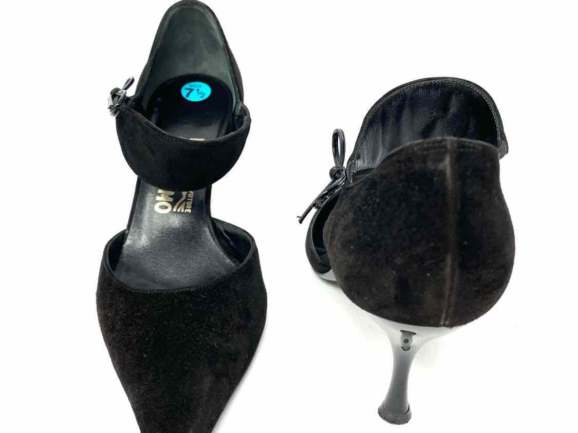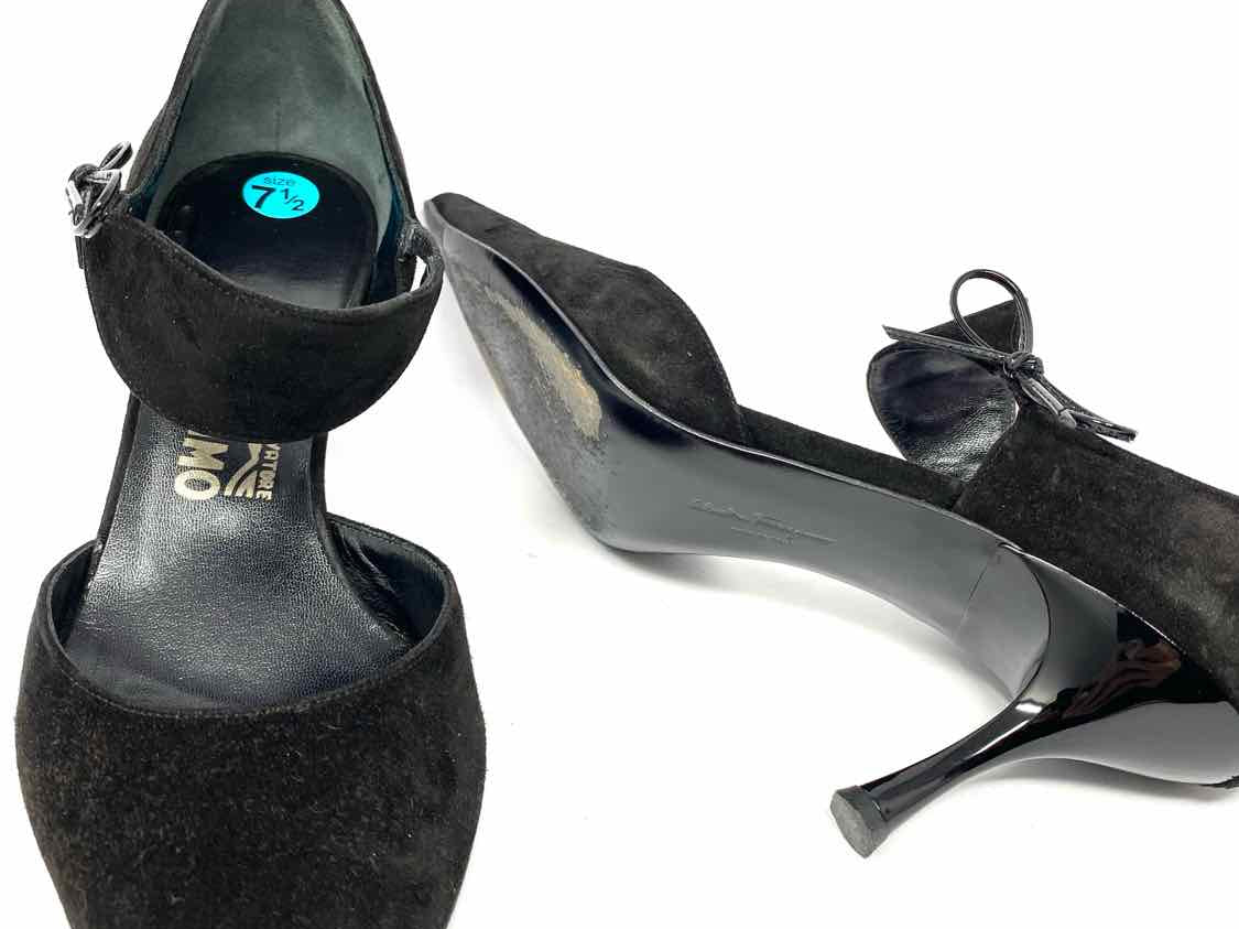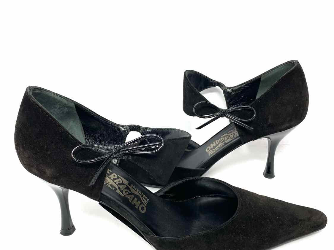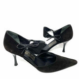 Salvatore Ferragamo D'Orsay Women's Black Size 7.5 Pointed Suede Bow Pumps