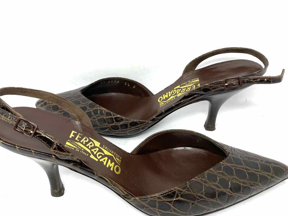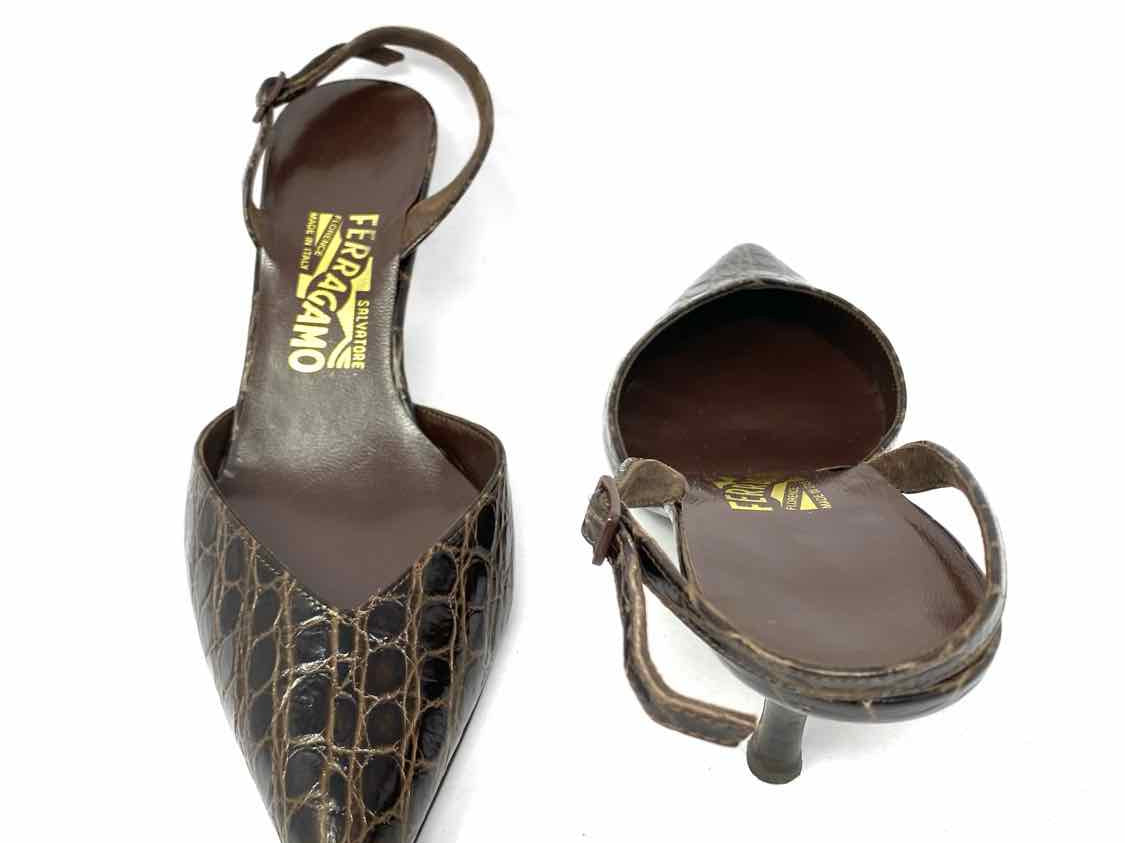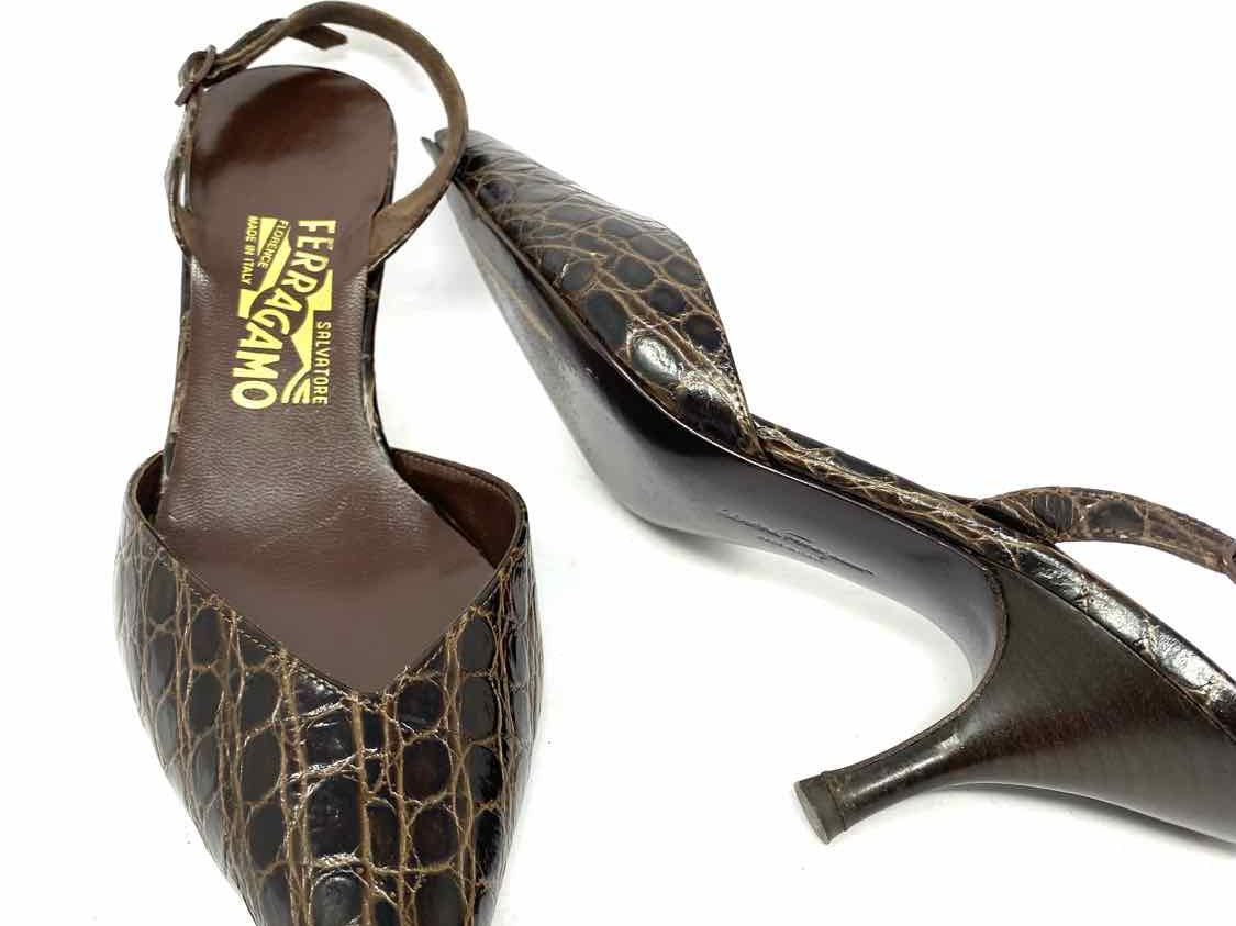 Salvatore Ferragamo Women's Brown Size 8 Pointed Leather Slingbacks