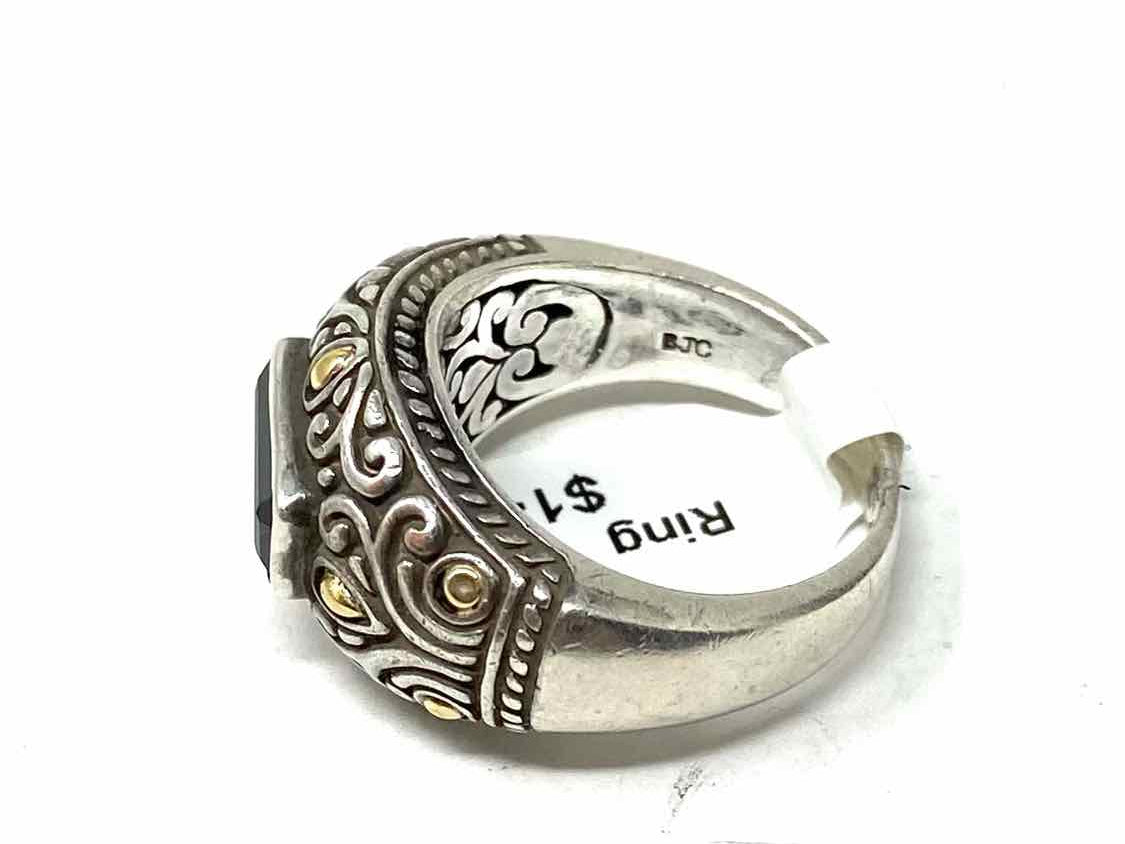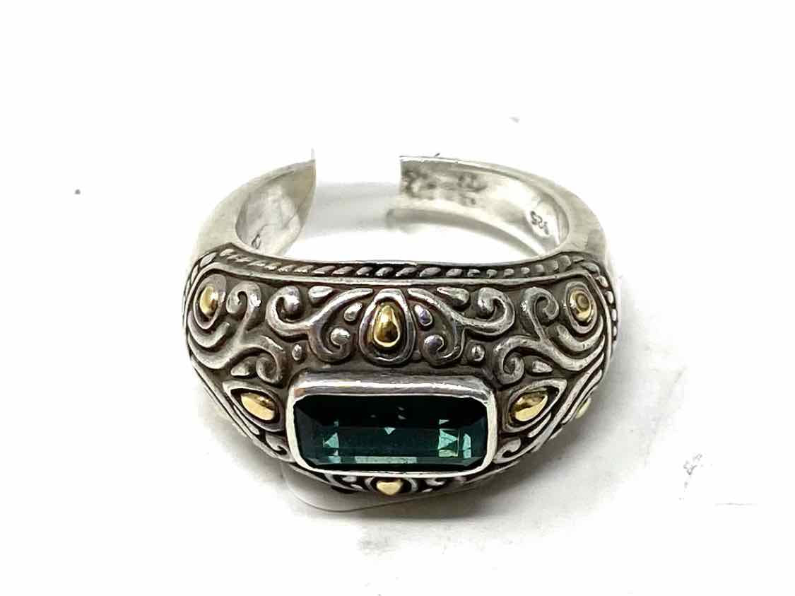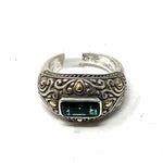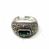 Samuel Benham 8 .925 Silver / Green Baguette Filigree Ring