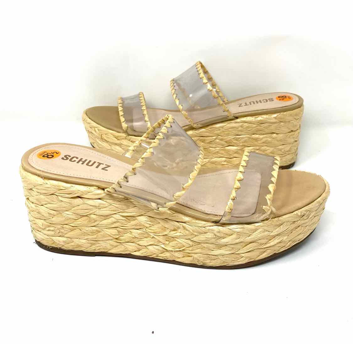 SCHUTZ Women's Beige / Clear Size 8.5 Espadrille Platforms