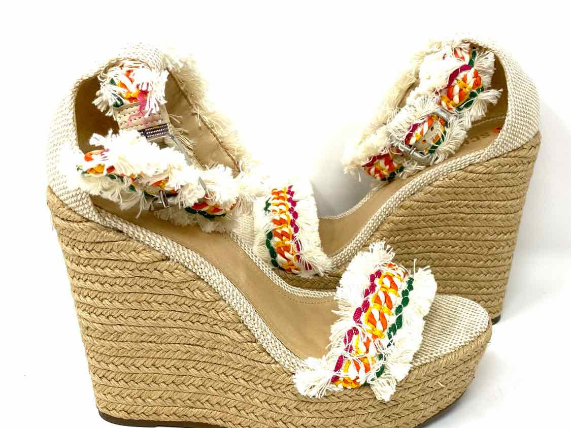 SCHUTZ Women's Beige Size 8.5 Wedge Espadrille Tassel Sandals