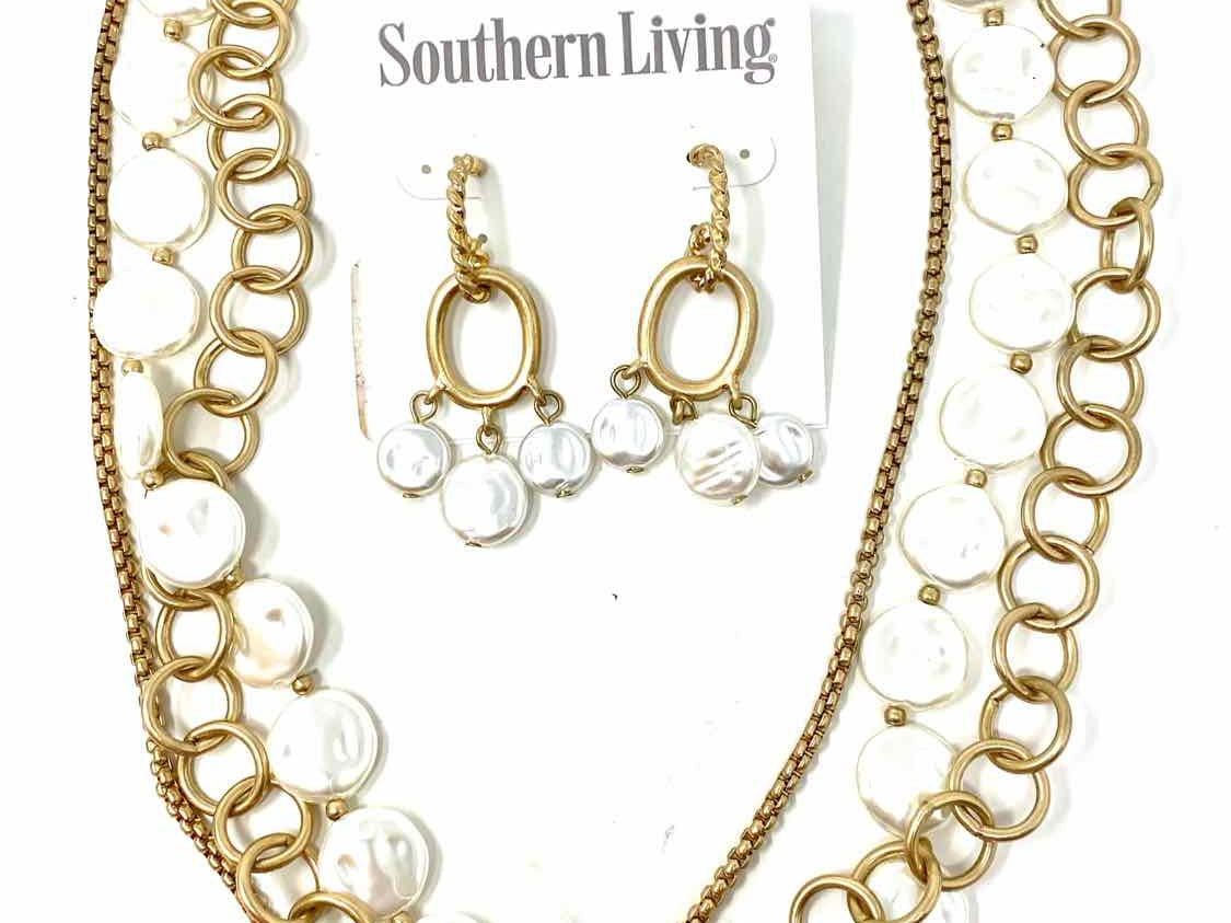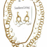 Southern Living Gold Tone Chandelier Multi-strand Faux Pearl Jewelry Set