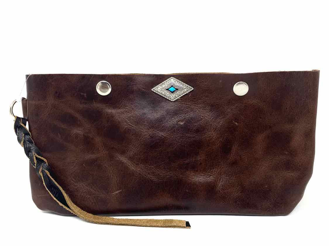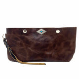 Southwestern Cowgirl Snaps Brown Cowhide Wristlet Clutch