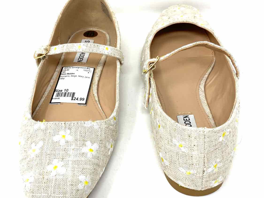 Steve Madden Women's Beige Size 10 Mary Jane Daisy Flats