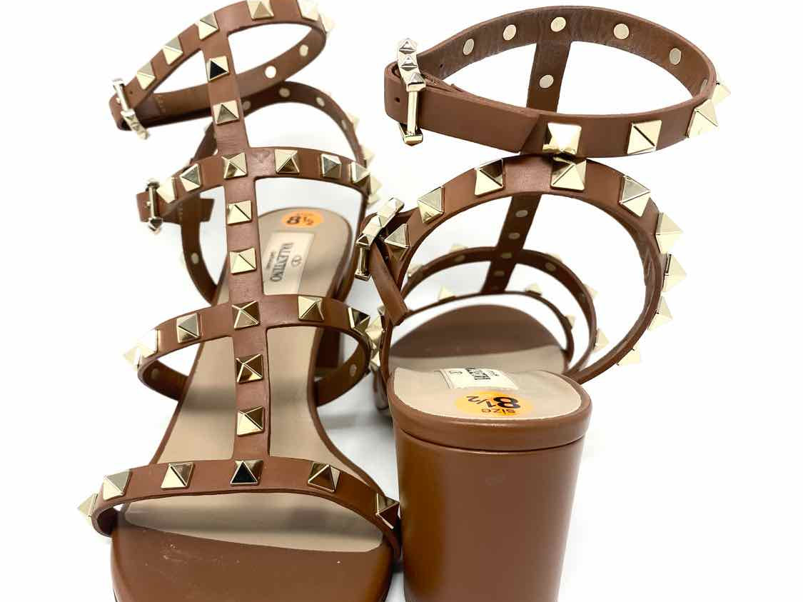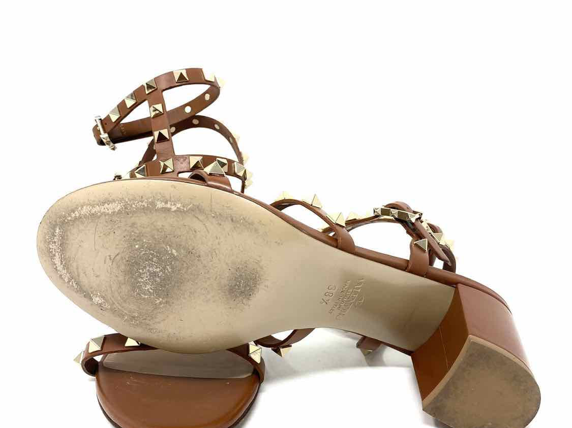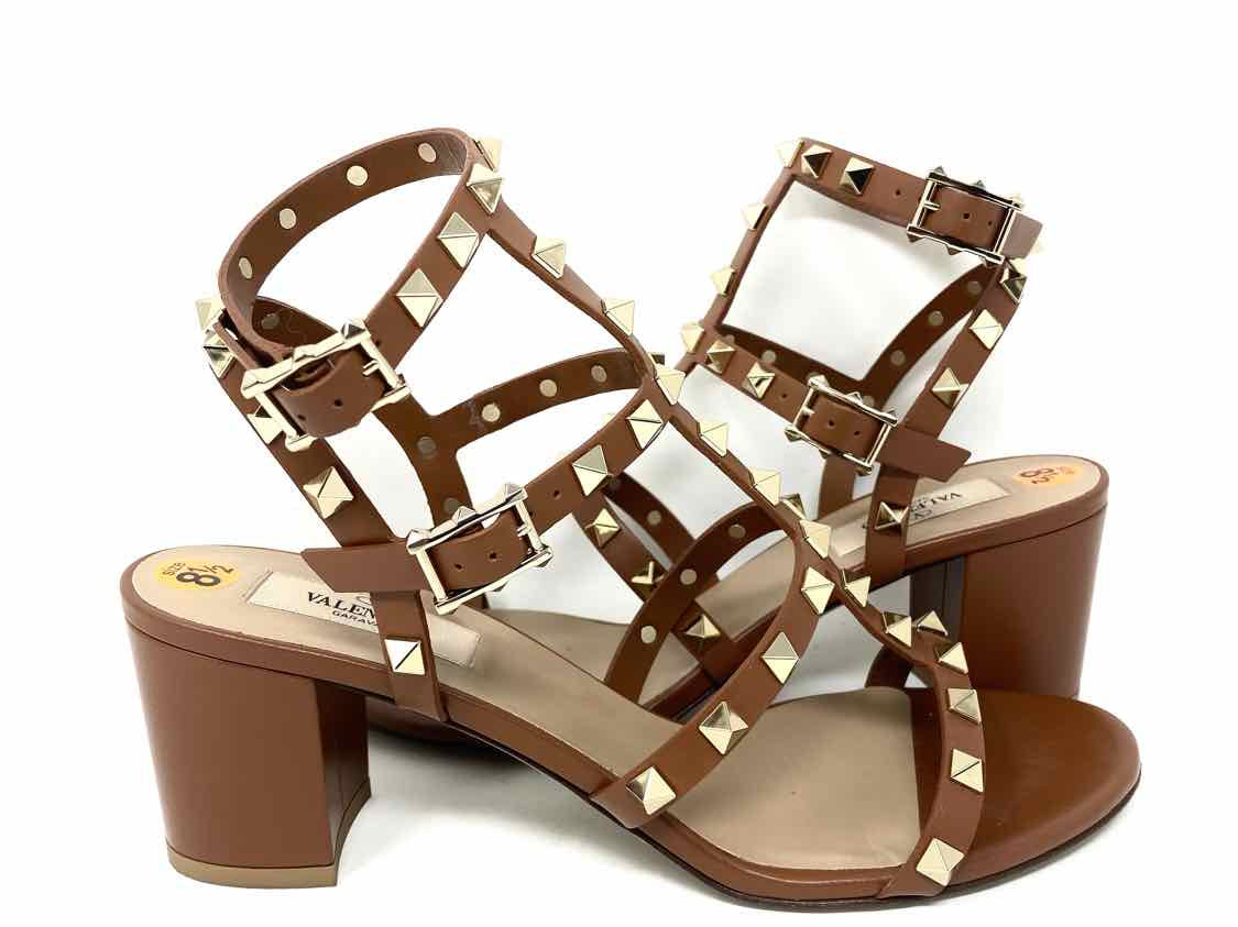 VALENTINO GARAVANI Selleria 60mm Women's Brown Size 38.5/8.5 Rockstud Sandals
