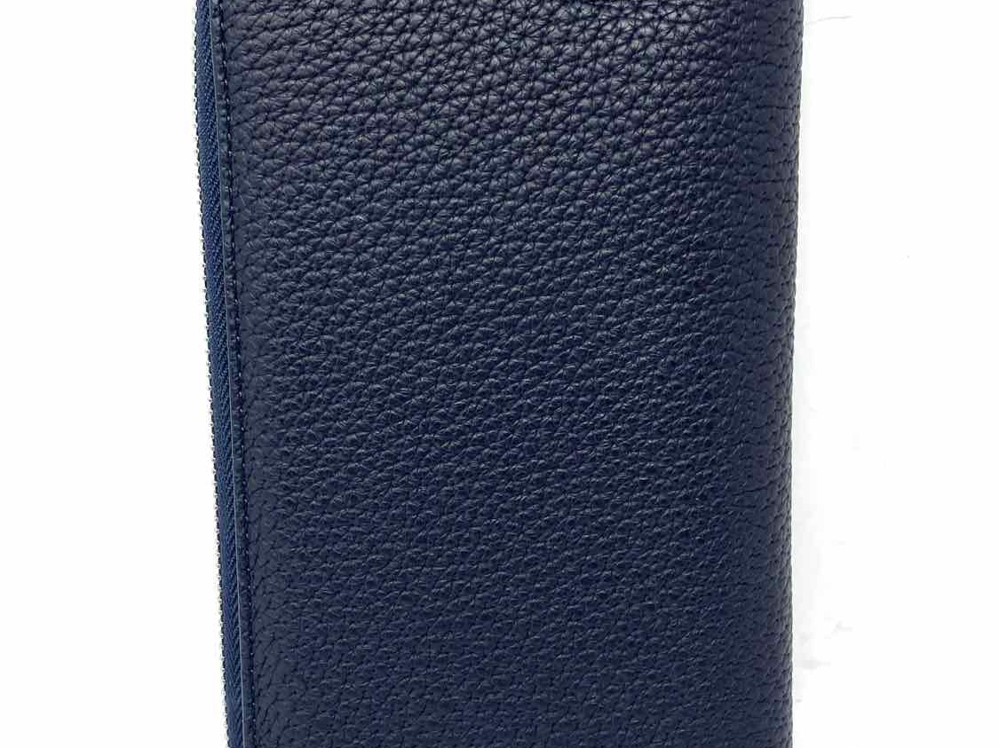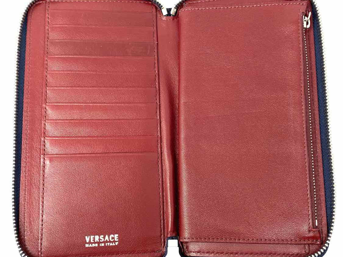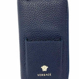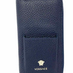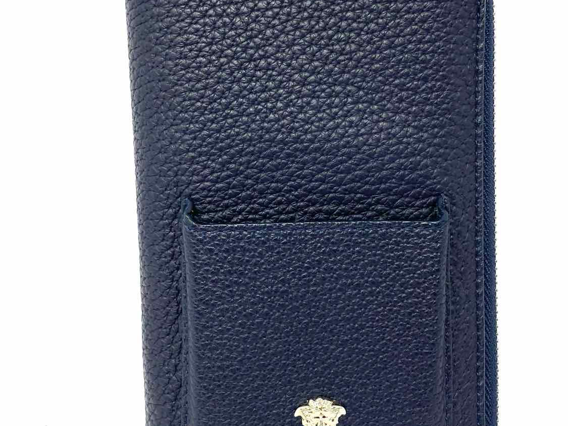 Versace Navy Blue Zip-Around Pebbled Leather Wallet