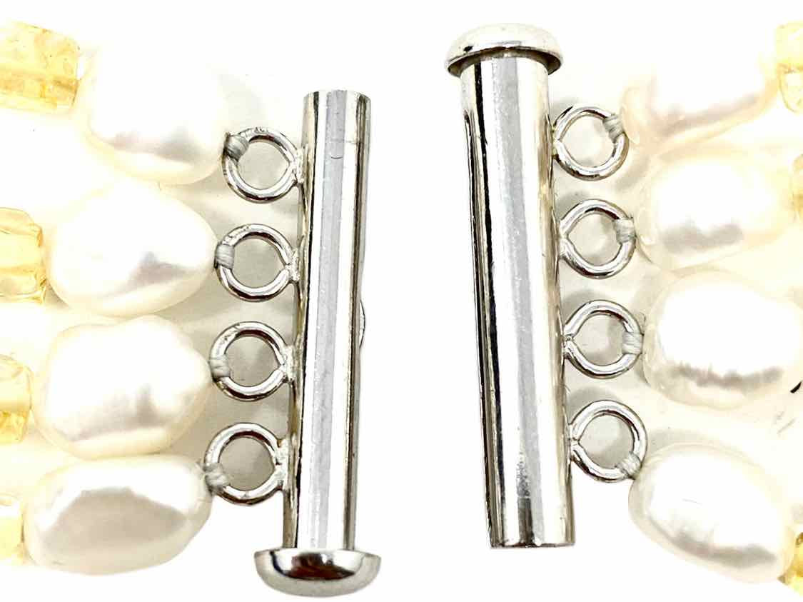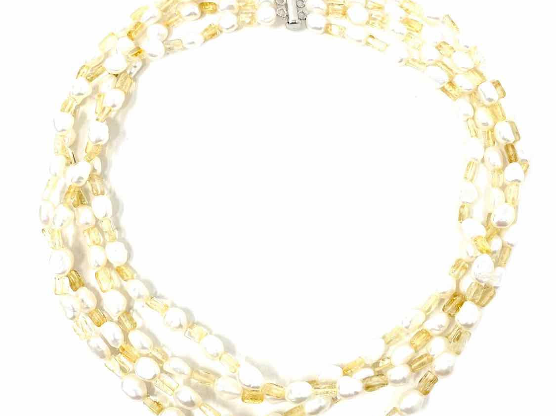 .925 Yellow Multi-strand white Rice Pearls Necklace
