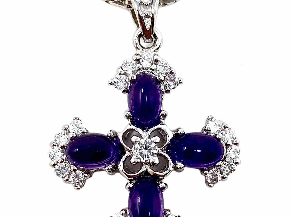 .925 Purple Cabochon Cross Amethyst Necklace