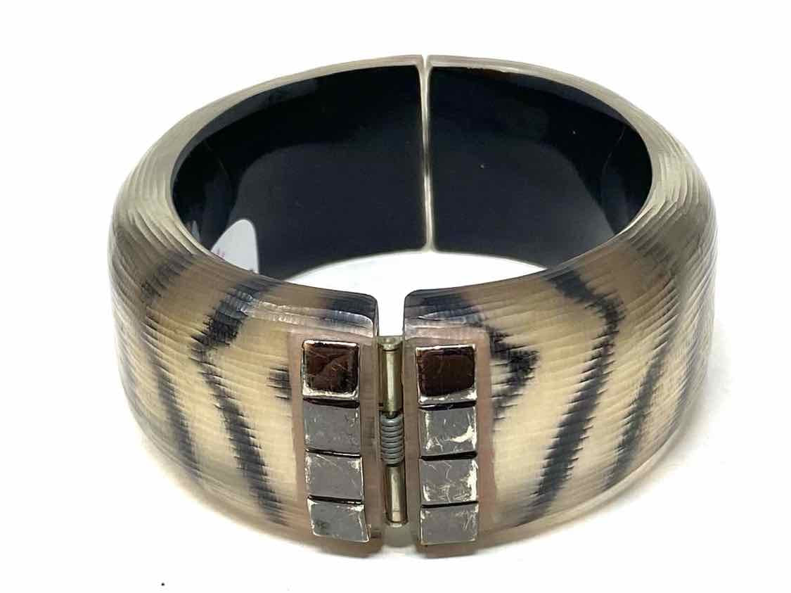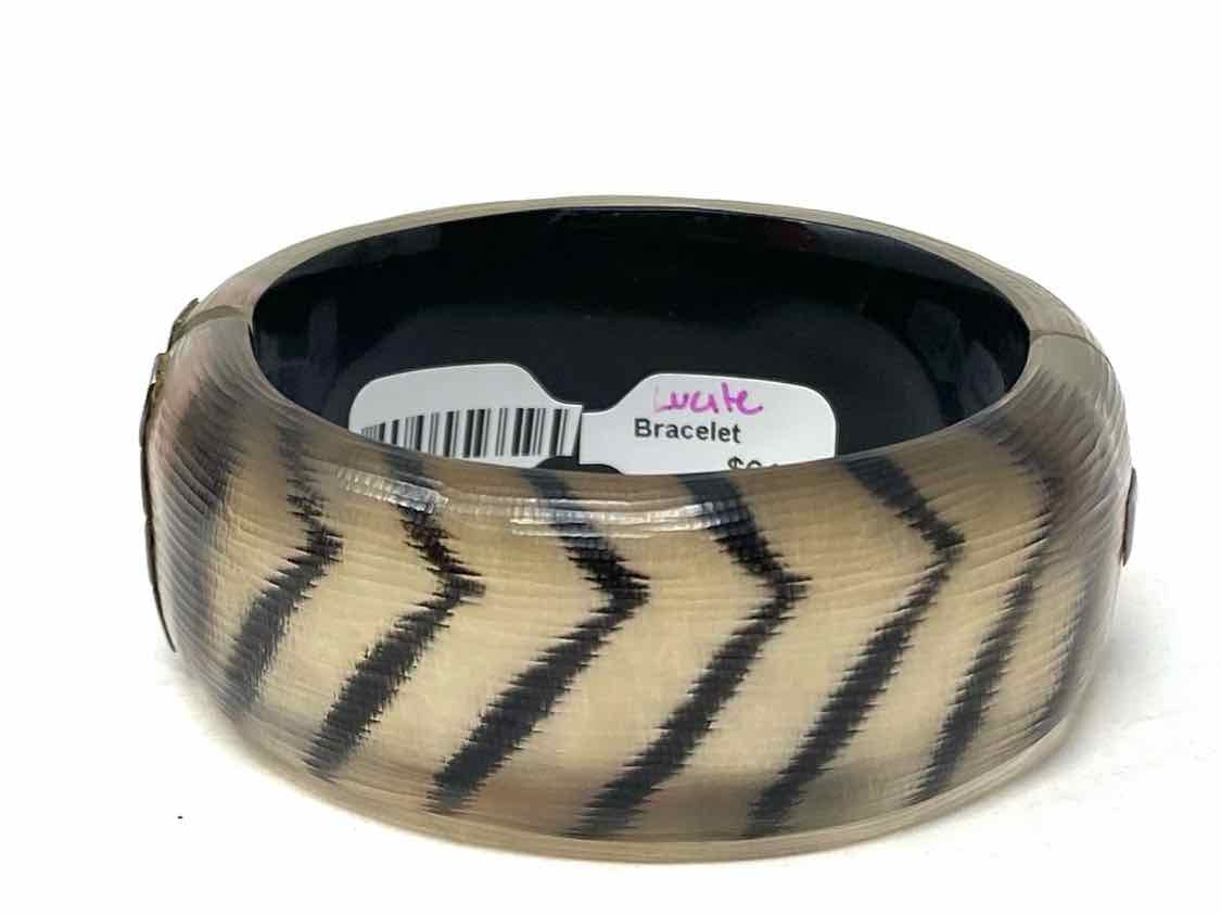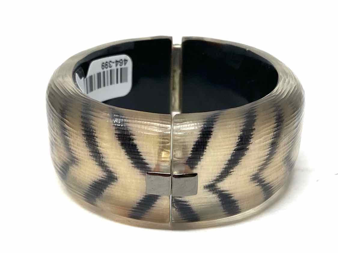 Alexis Bittar Beige / Black Bangle Stripe Lucite Bracelet