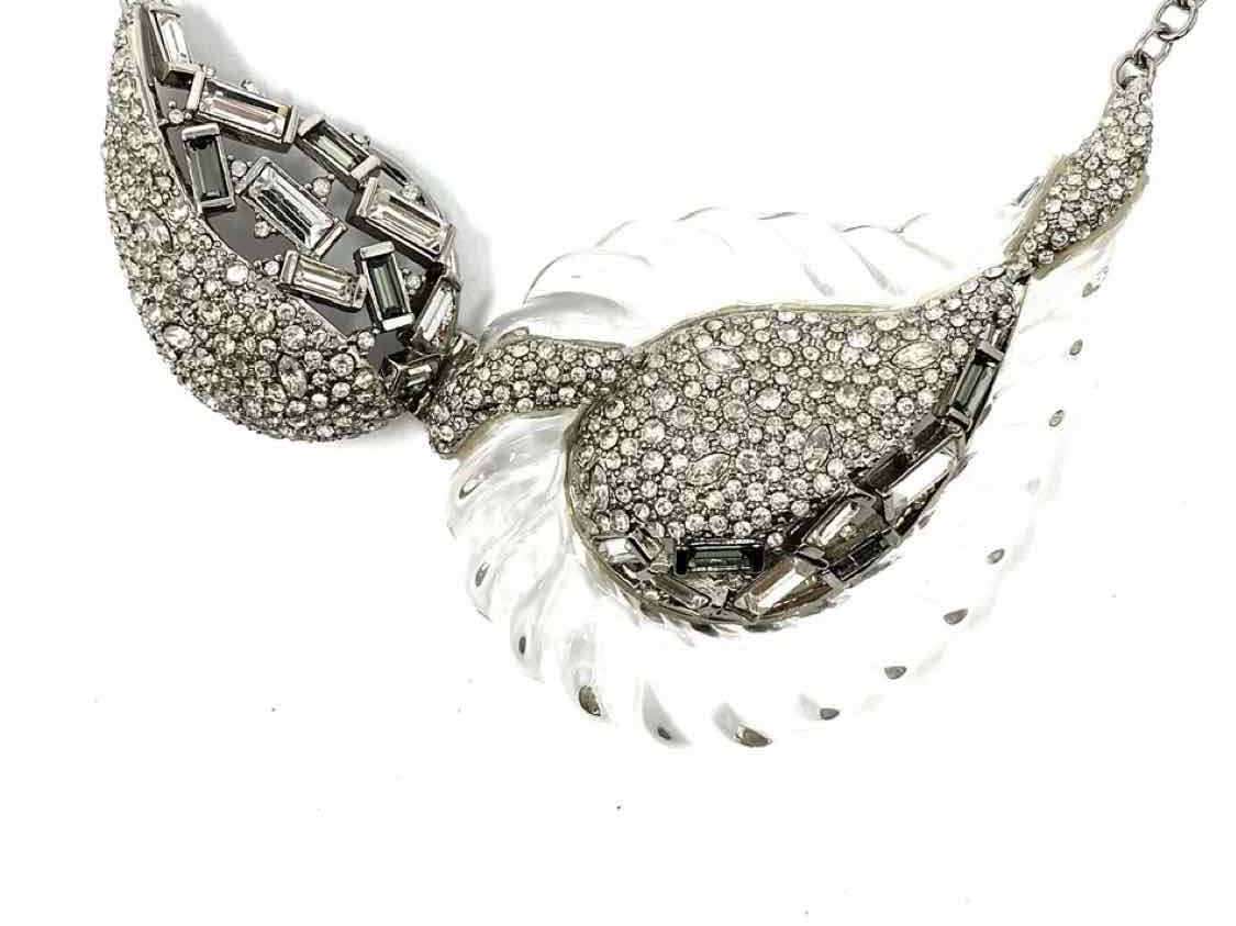 Alexis Bittar White Silver Tone Statement Abstract Crystal Necklace