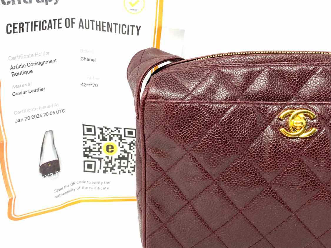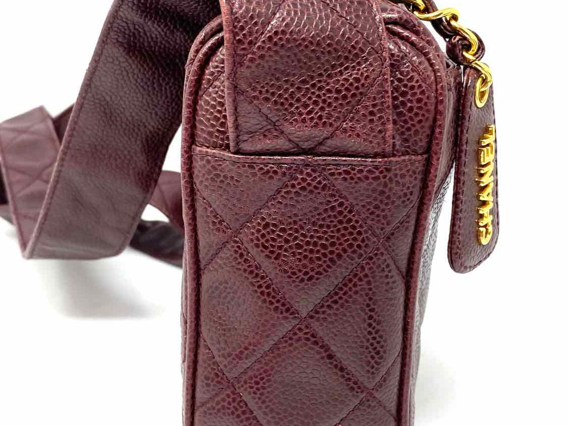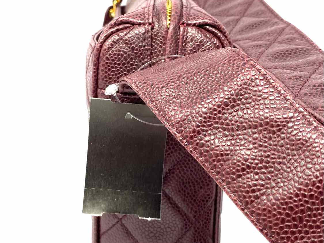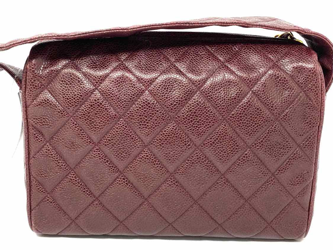 Chanel 1996-1997 CC Timeless Burgundy Quilted Caviar Leather Shoulder Bag