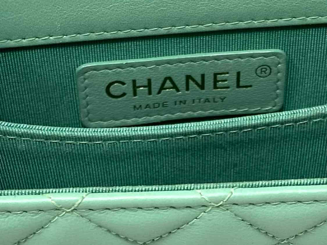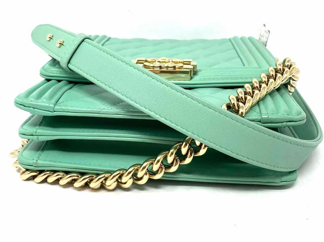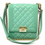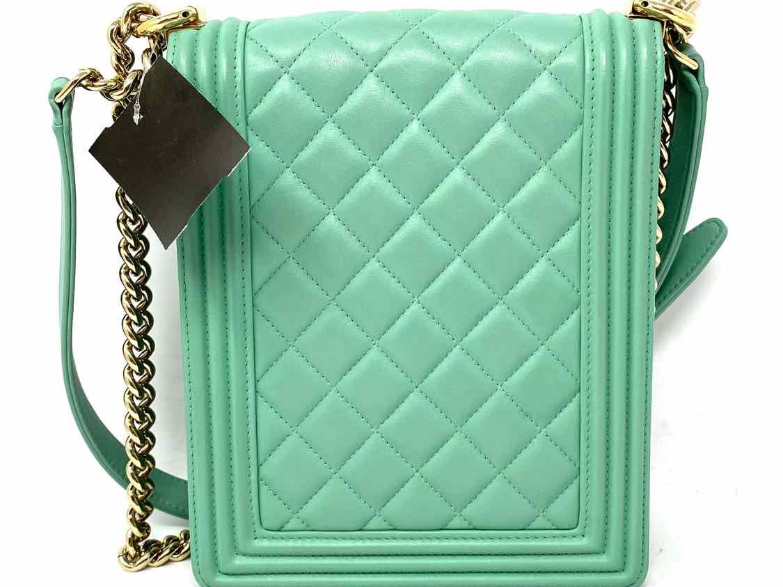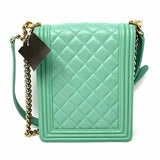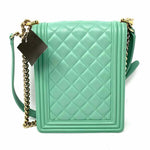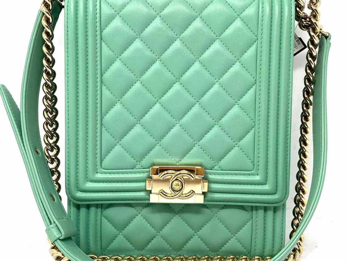 Chanel 2019 North South Boy Bag Mint green Flap Quilted Leather Crossbody