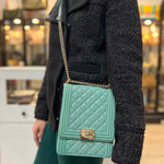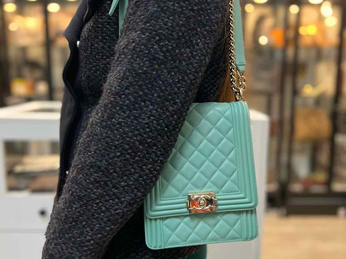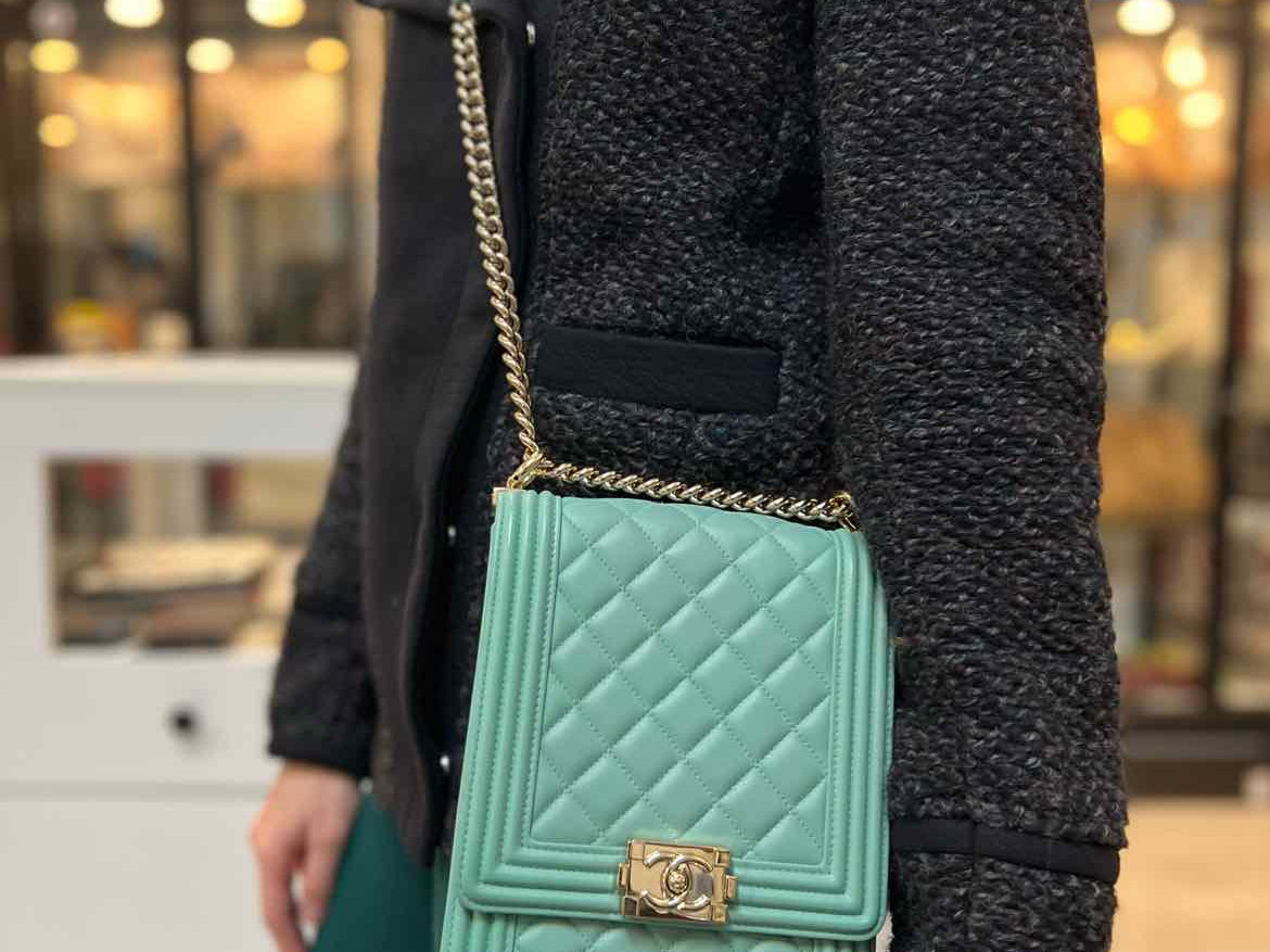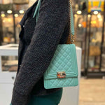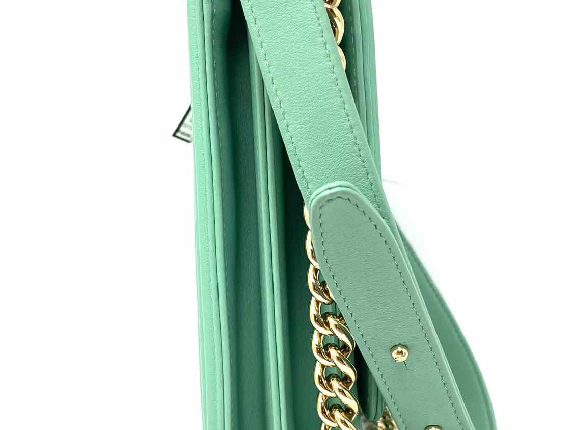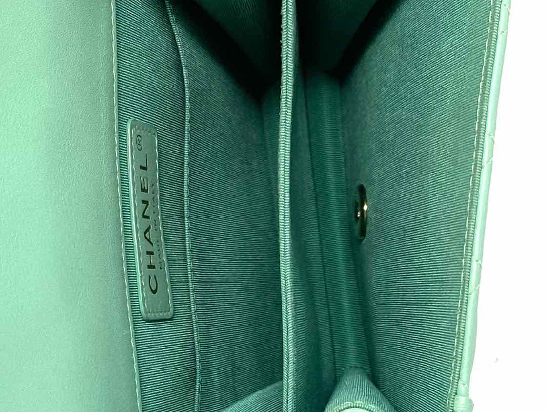 Chanel 2019 North South Boy Bag Mint green Flap Quilted Leather Crossbody